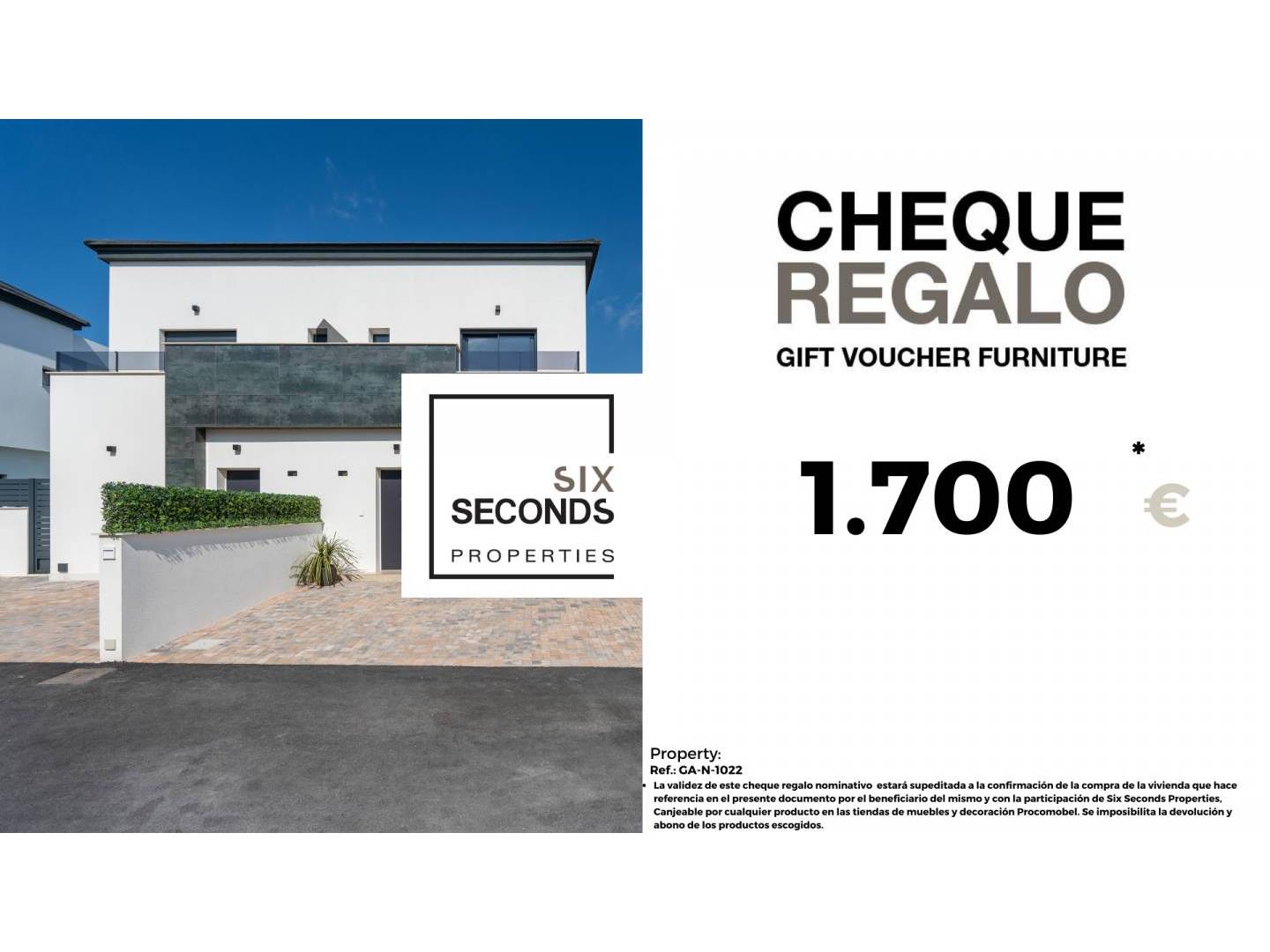 At Six Seconds Properties (965059685) we help you turn your new property into the home of your dreams, giving you a gift voucher for €1,700 in furniture and a technical visit to the home, where our technical team will advise you on the possibilities of improving the property. the House. Totally free!!