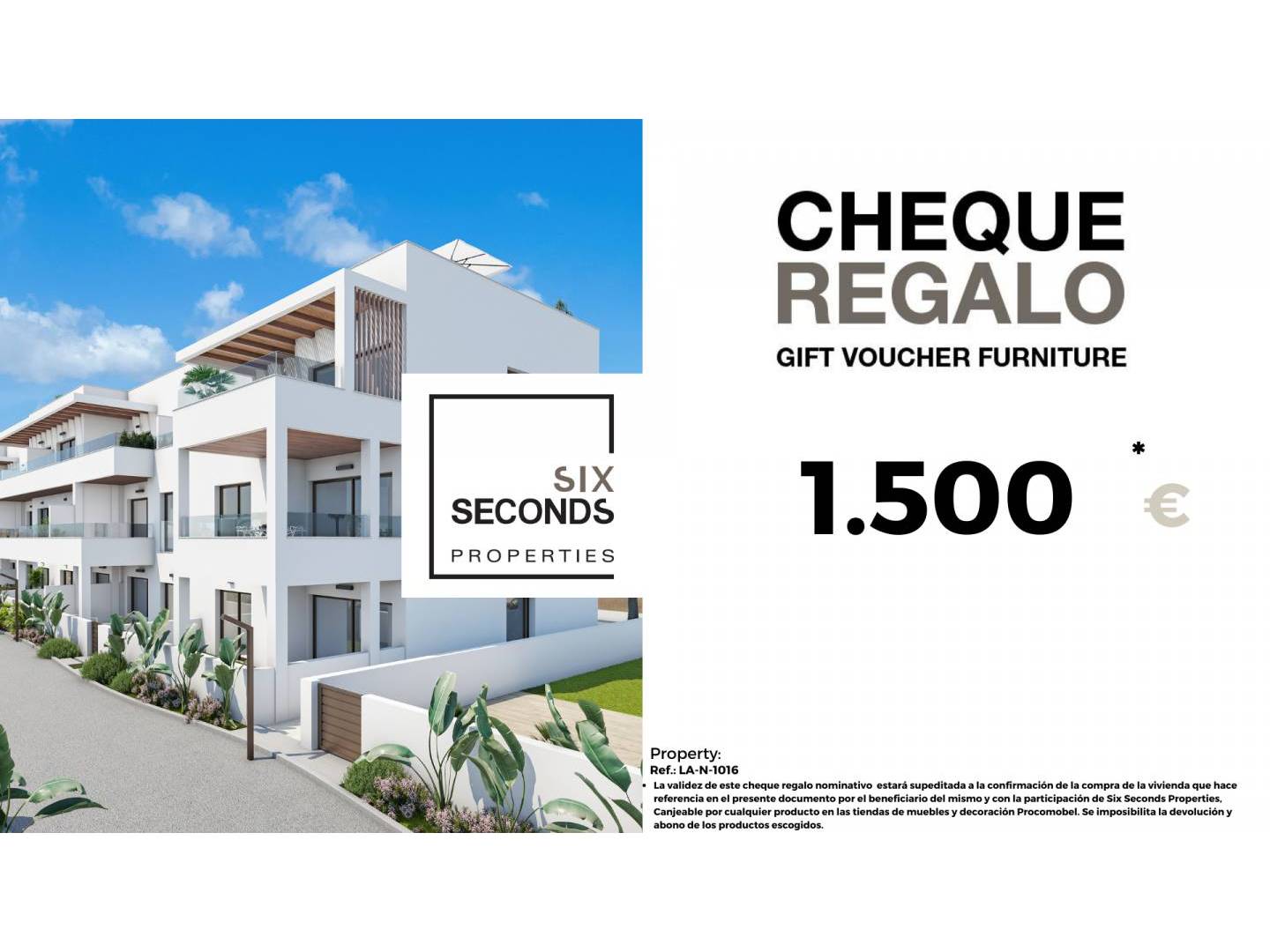 At Six Seconds Properties we help you turn your new property into the home of your dreams, giving you a gift voucher for furniture for an amount of €1,500 and a technical visit to the home, where our technical team will advise you on the possibilities of improving the home. the House. Totally free !!