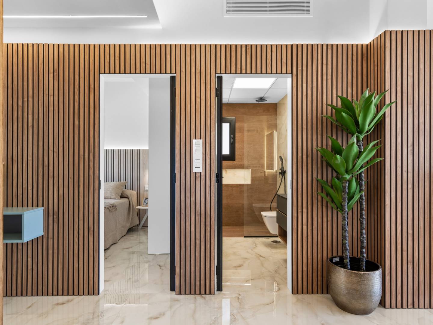 These modern villas are built to the highest quality standards and have an armored entrance door to ensure your safety. It is a unique space that adapts perfectly to the Mediterranean environment, with impressive views and garden areas carefully decorated with artificial grass, white gravel, palm trees and natural flowers. And for those who value privacy, each villa has a parking area on the plot.