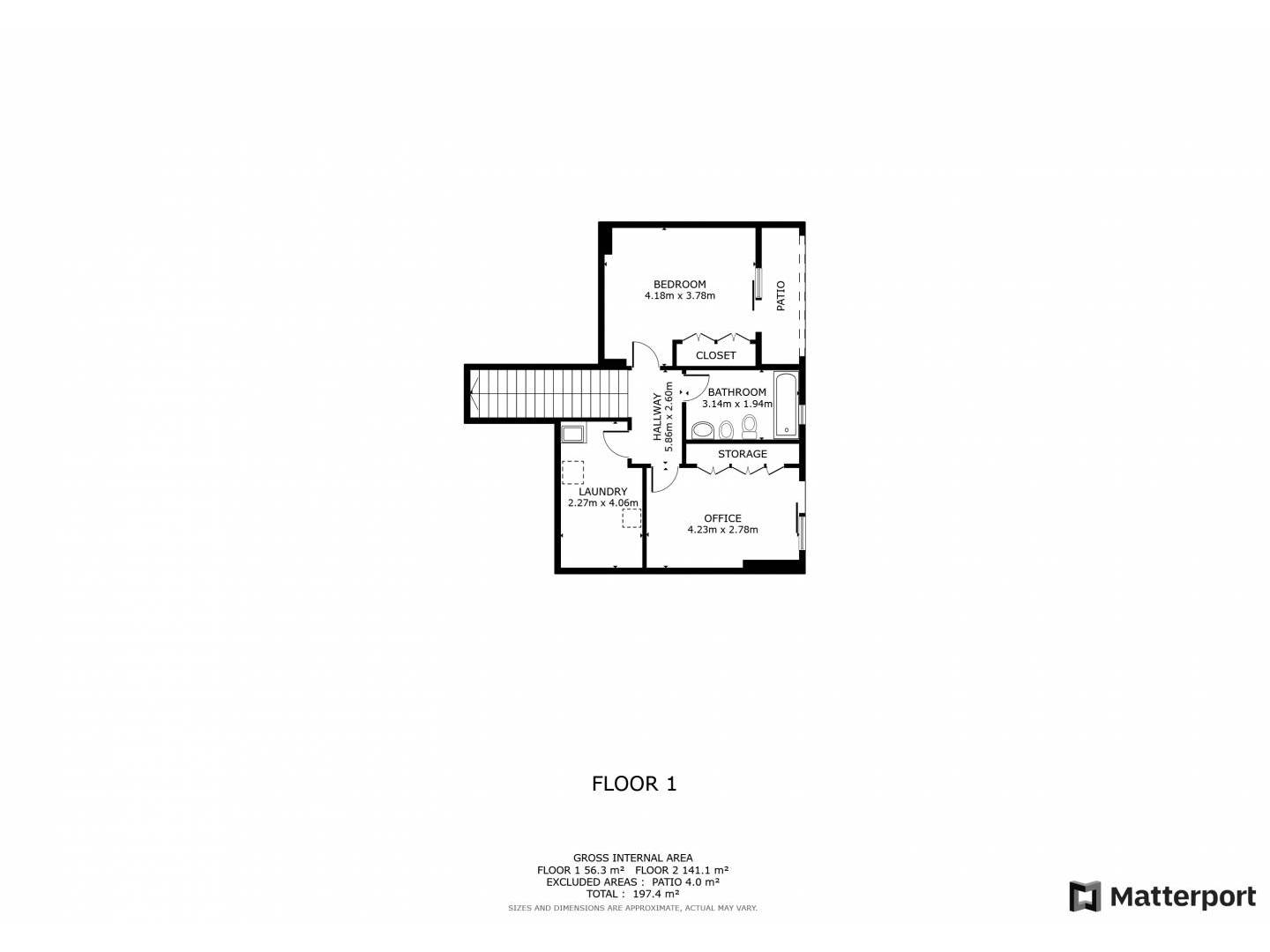 With a generous layout of 312 m2 , the property features four large bedrooms and two bathrooms , complemented by a practical guest toilet .