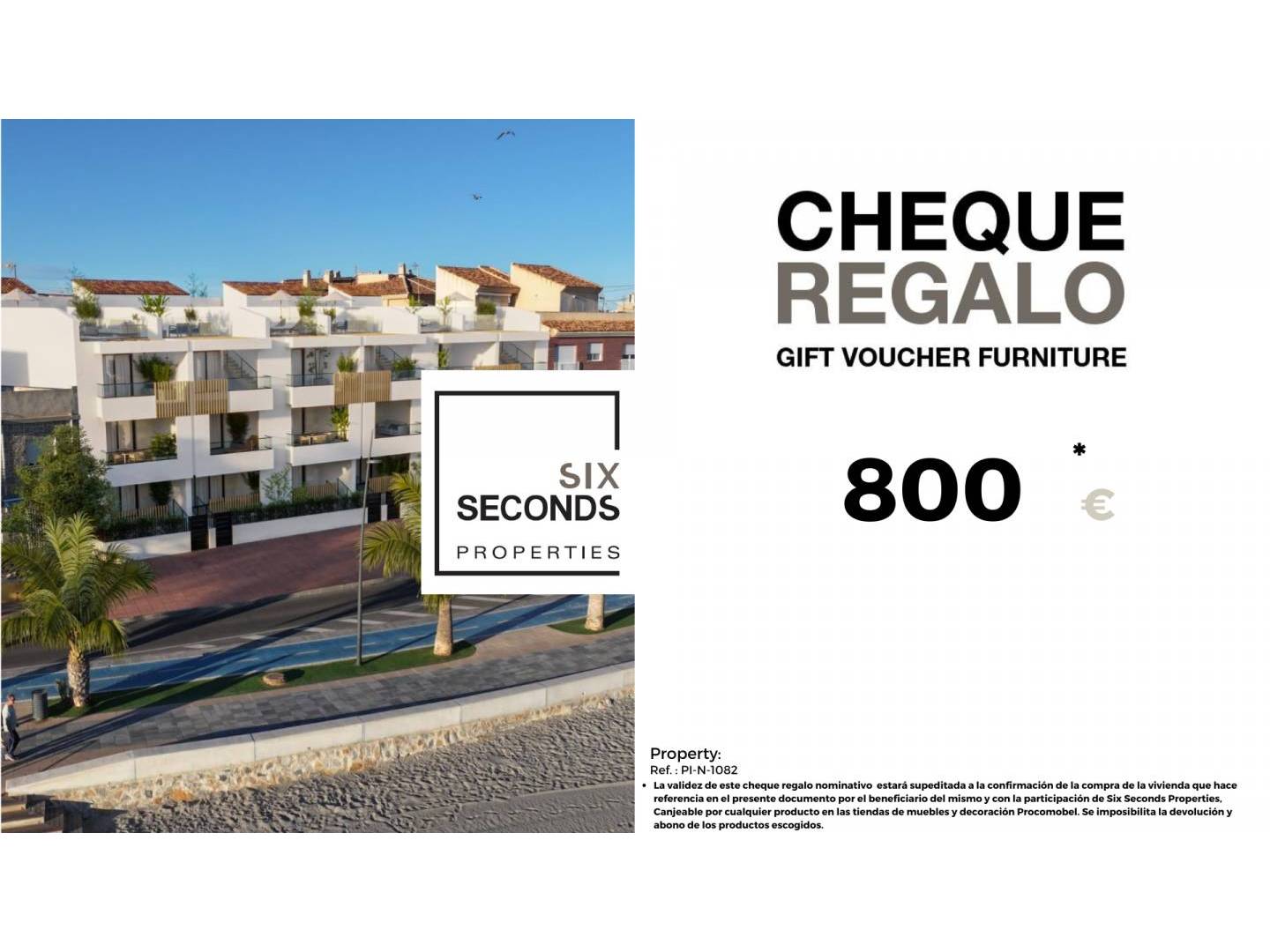 In six Seconds Properties we help you turn your new property into the home of your dreams, giving you a gift voucher for € 800 furniture and a technical visit to the home , where our technical team will advise you on the possibilities of home improvement. Totally free !!