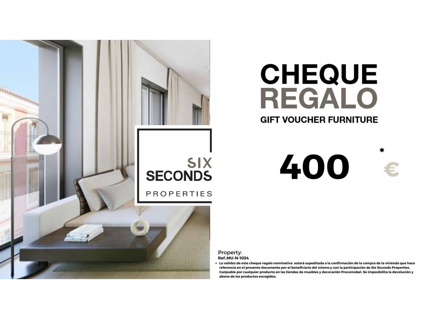 At Six Seconds Properties we help you turn your new property into the home of your dreams, giving you a gift voucher for furniture for €400 and a technical visit to the home. , where our technical team will advise you on the possibilities of home improvement.