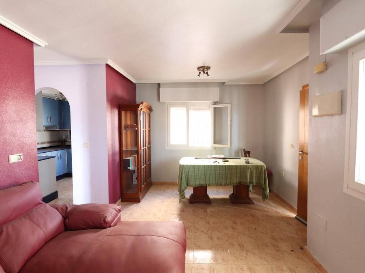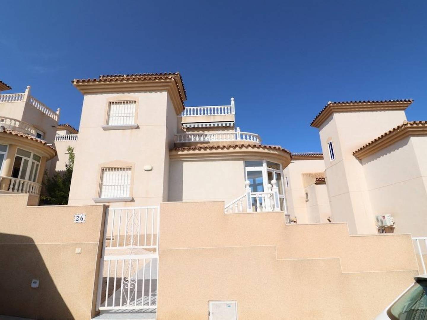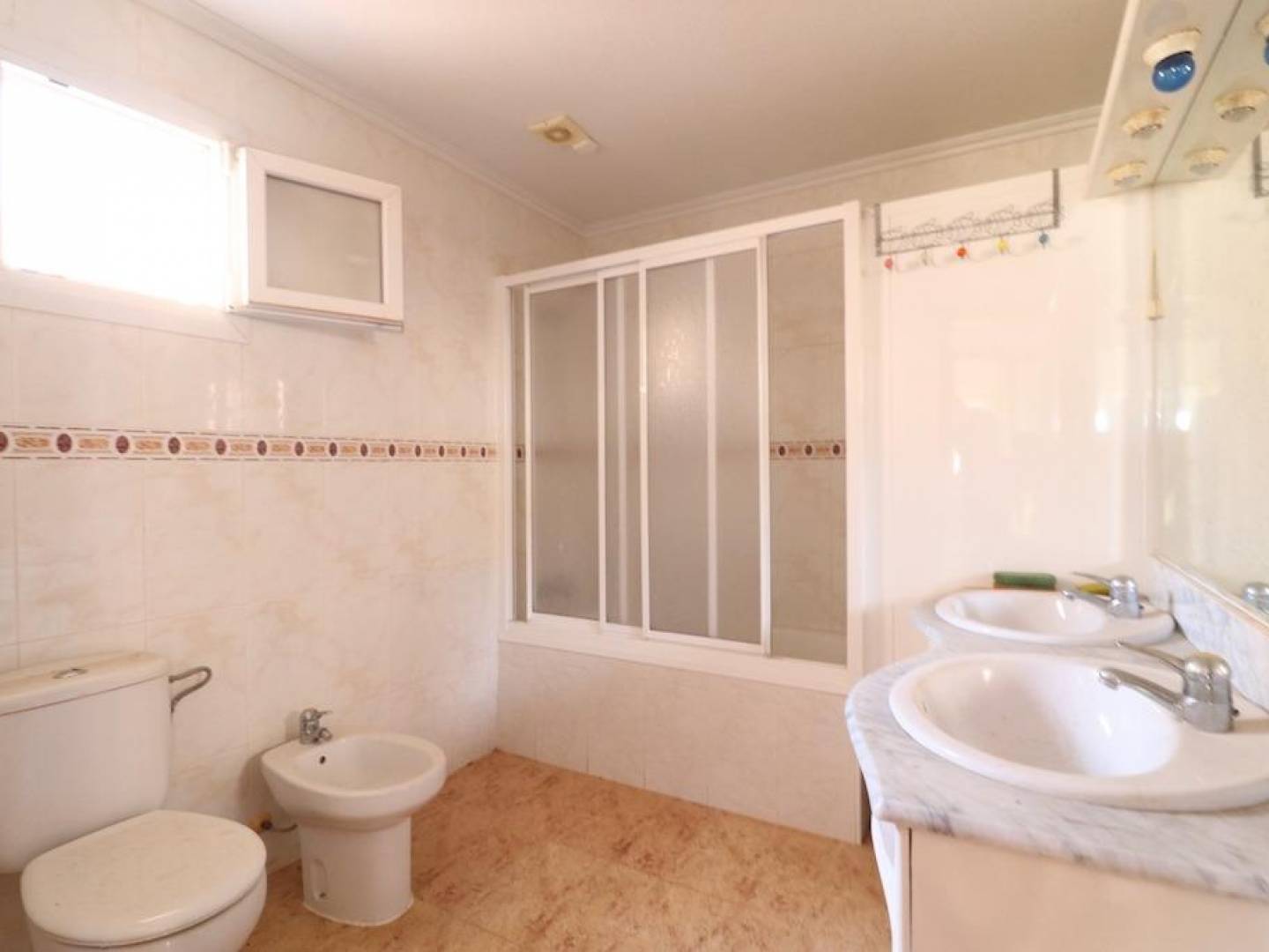 The villa also has two terraces, one of which is glazed, ideal for enjoying the Mediterranean climate. The property is sold semi-furnished and is part of a residential complex with a communal pool, which provides a pleasant leisure and relaxation area.