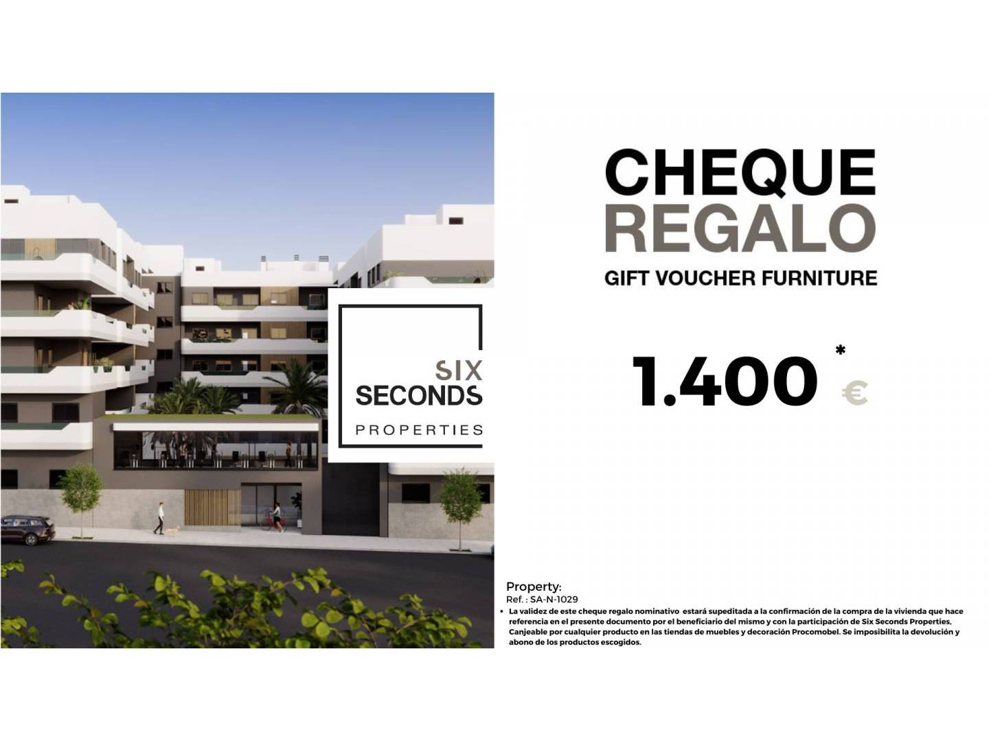 At Six Seconds Properties we help you turn your new property into the home of your dreams, giving you a gift voucher for furniture for an amount of €1,400 and a technical visit to the home, where our technical team will advise you on the possibilities of improving the home. the House. Totally free !!