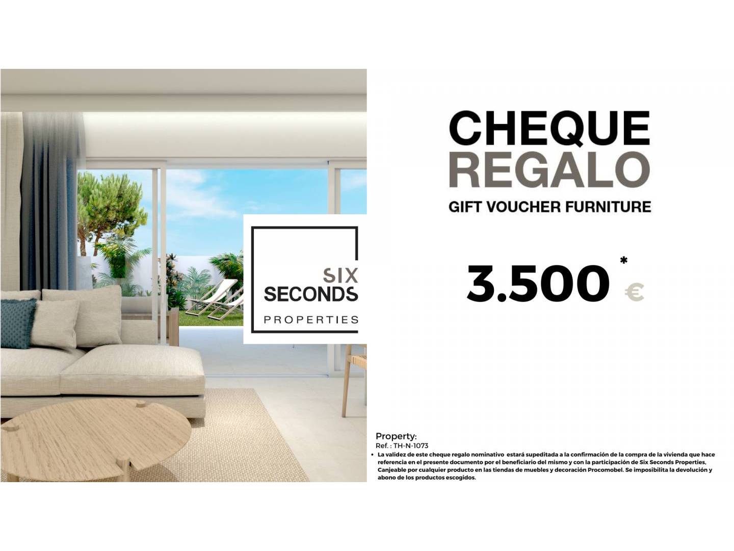 From our real estate agency we help you turn your new property into the home of your dreams, giving you a gift voucher for €3,500 in furniture and a technical visit to the home from the design department , where our technical team will advise you on the possibilities of improvement and decoration of your property. Totally free!!