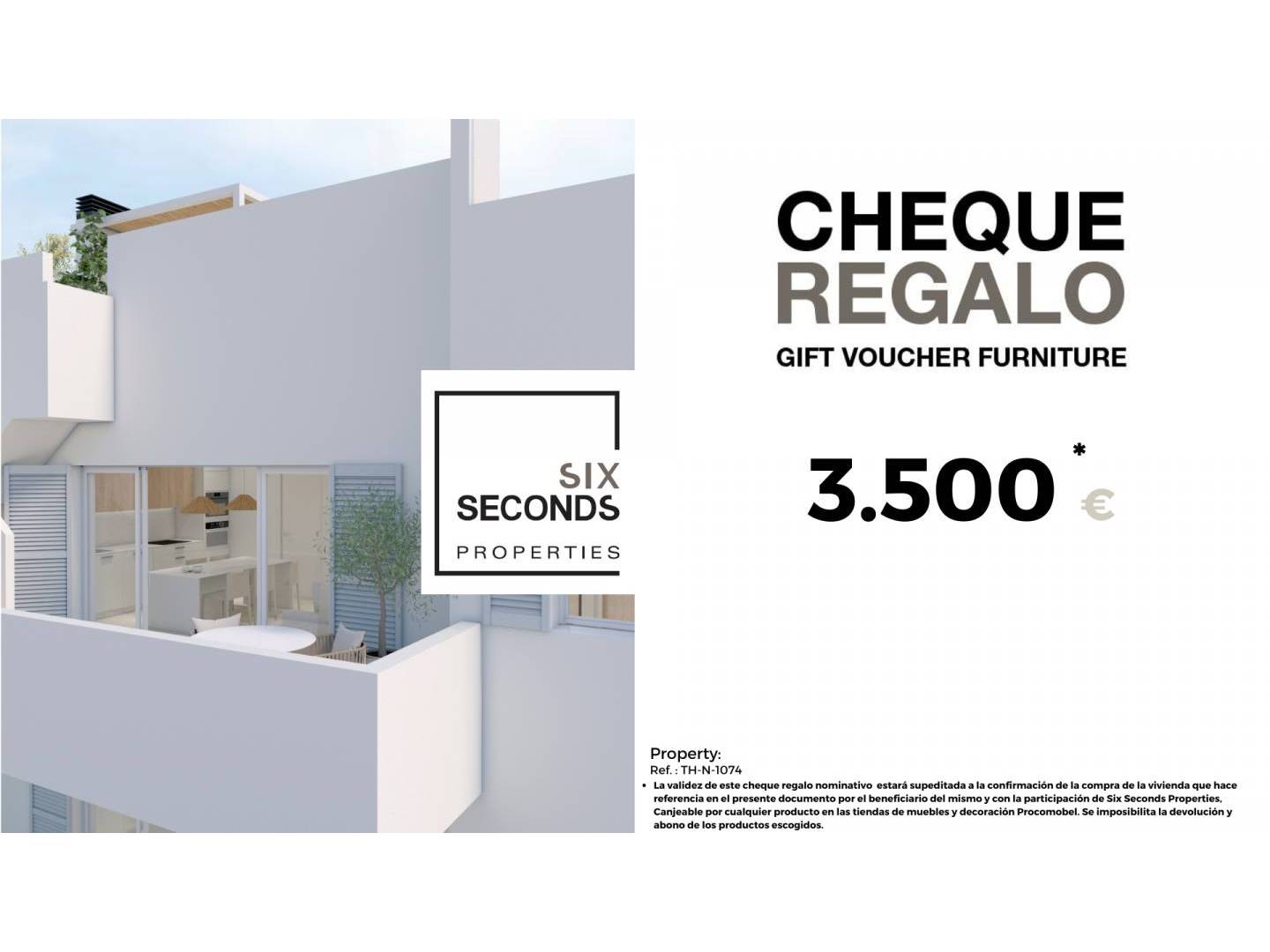 From our real estate agency we help you turn your new property into the home of your dreams, giving you a gift voucher for €3,500 in furniture and a technical visit to the home from the design department , where our technical team will advise you on the possibilities of improvement and decoration of your property. Totally free!!