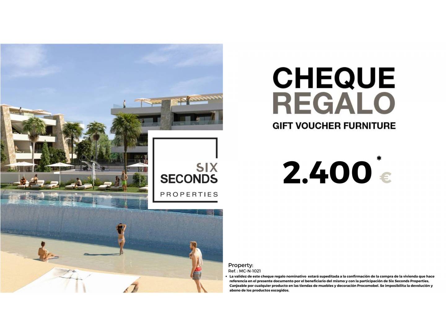 At Six Seconds Properties (965059685) we help you turn your new property into the home of your dreams, giving you a gift voucher for €2.400 worth of furniture and a technical visit to the home, where our technical team will advise you on the possibilities of improving the property. the House. Totally free!!