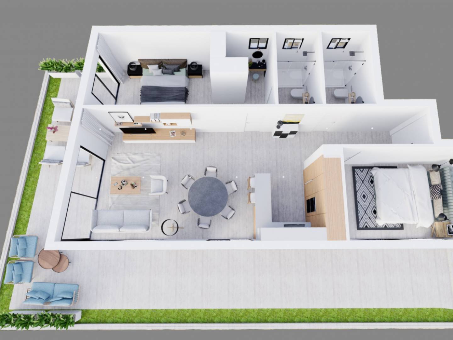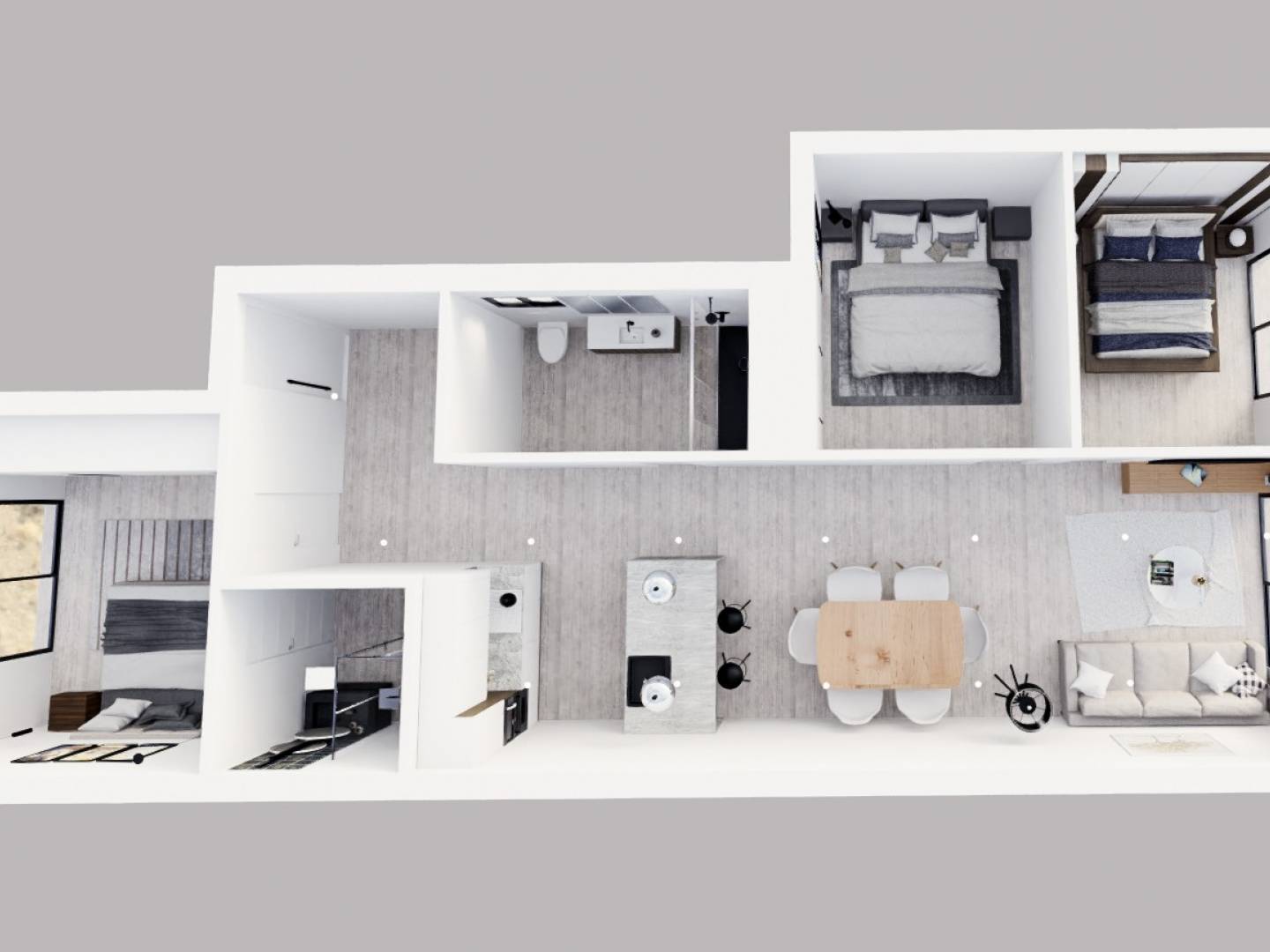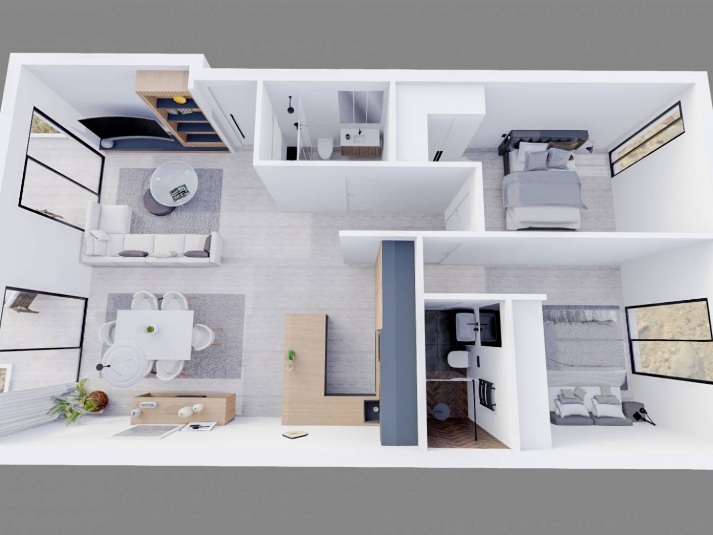 All the flats are equipped with underfloor heating, soundproofing and pre-installation for air conditioning. They also have an underground parking space and optional storage room.