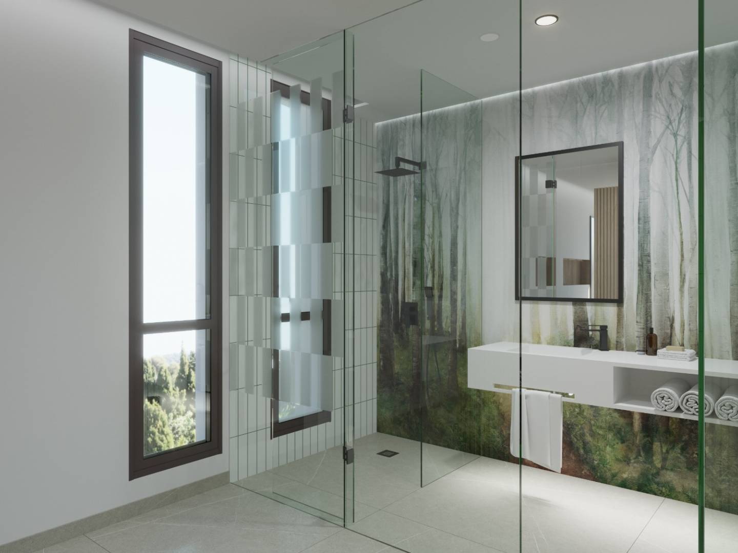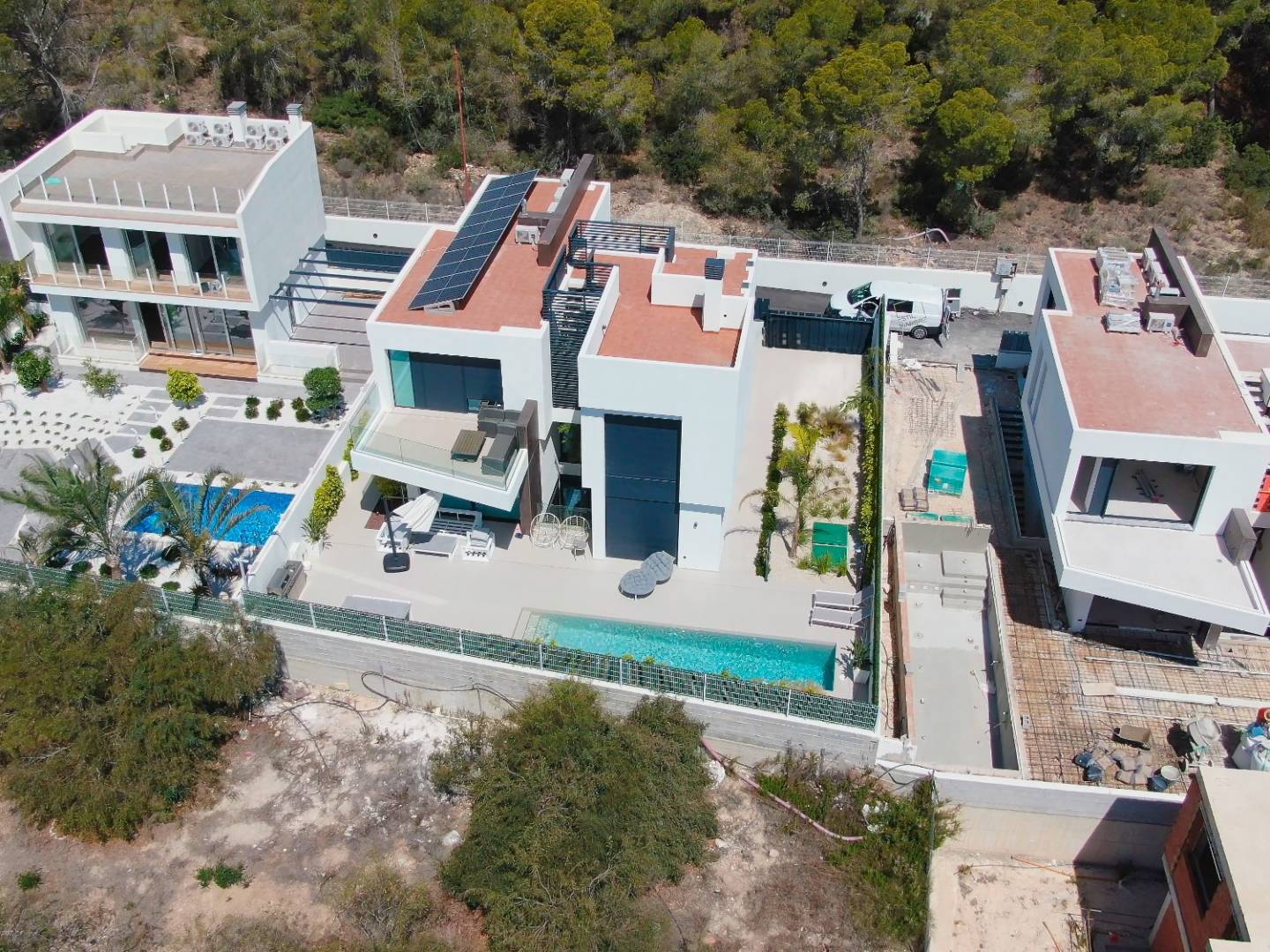 The villas have 4 bedrooms, 4 bathrooms, a spacious and bright living room, a dining area, a fully equipped kitchen, a large porch with a barbecue area and a sun terrace with panoramic views of the area and the Mediterranean Sea.