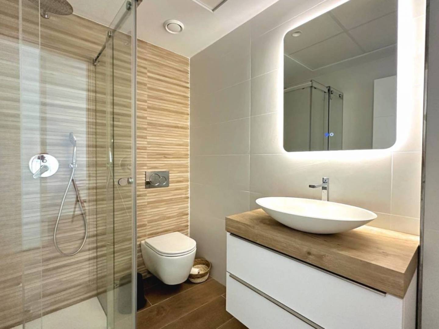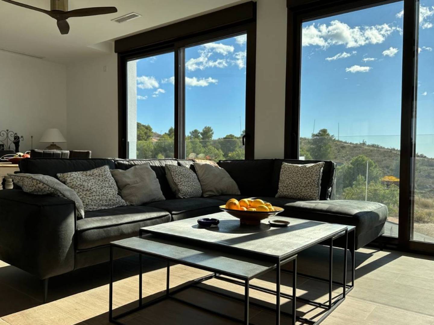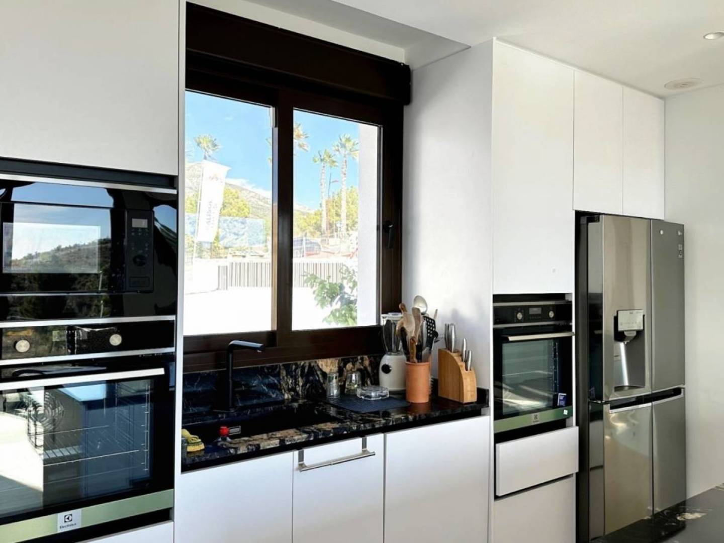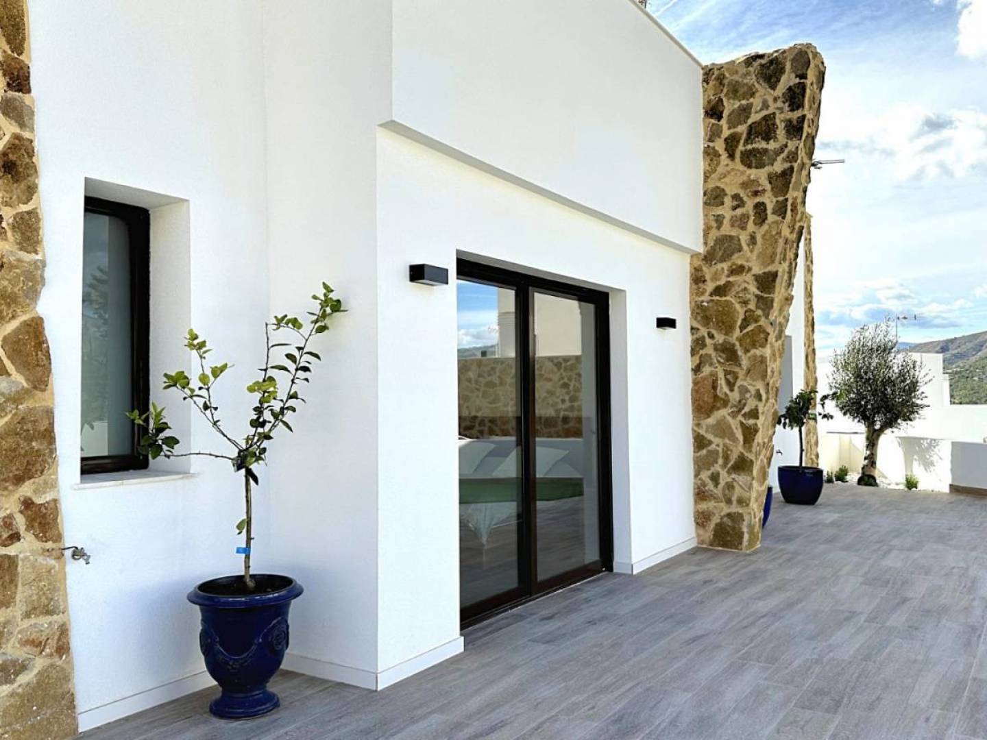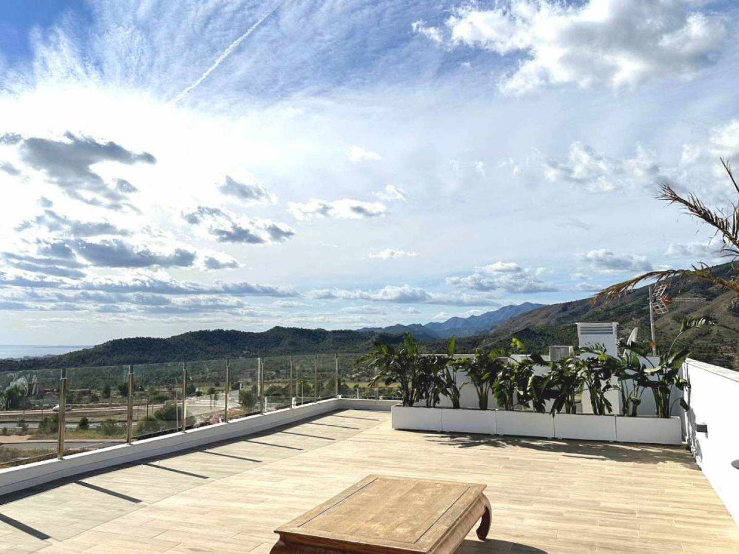 The house was finished a few months ago and is distributed over 2 floors. On the main floor we have the living-dining room, the kitchen, a guest toilet and the large master bedroom with an en-suite bathroom and dressing room. From the living room or the bedroom we can access the pool and the garden of the house. On the ground floor we find another 2 bedrooms, one of them with an en-suite bathroom, another full bathroom, access ramp to the garage and the laundry area. The solarium has 360 ° views of the sea and the mountains.