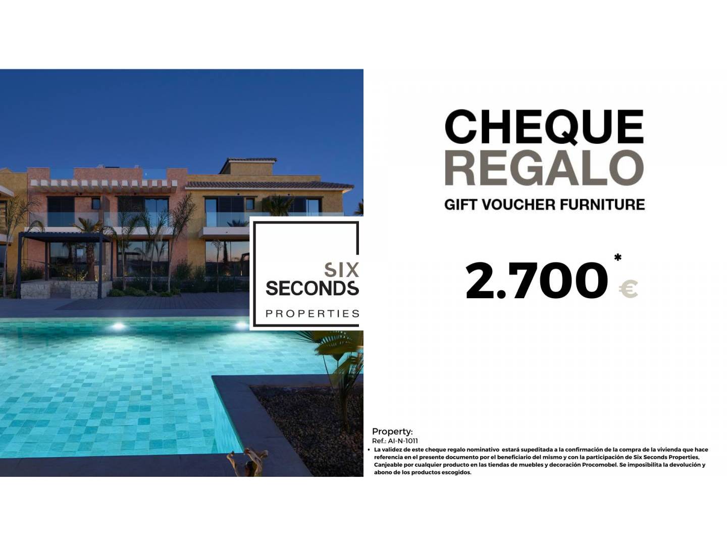 From our real estate agency we help you turn your new property into the house of your dreams, giving you a gift voucher worth €2,700 in furniture and a technical visit to the property by the design department , where our technical team will advise you on the possibilities of improvement and decoration of your property. Totally free!!