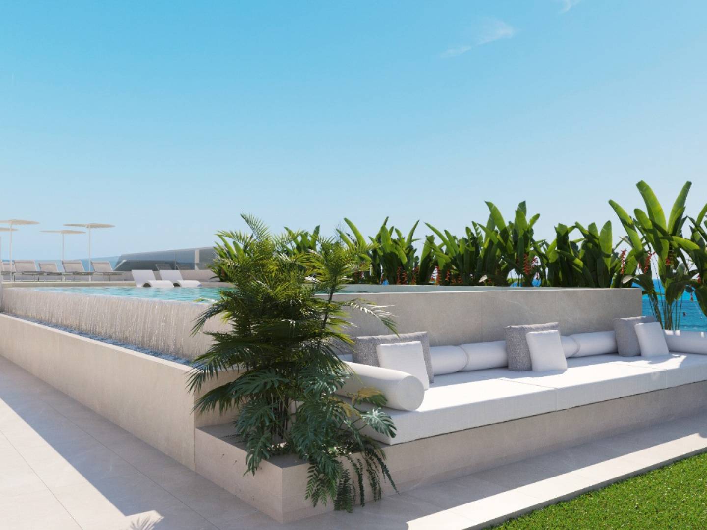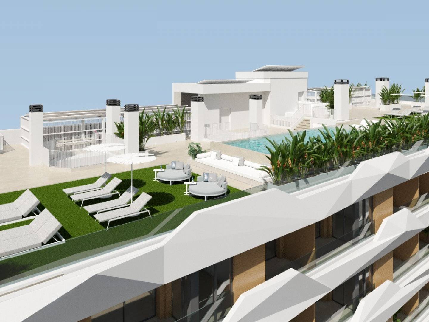 The building will have 44 apartments with 1 to 3 bedrooms, with 1 or 2 bathrooms, all equipped with a terrace . The apartments on the ground floors will also have a private patio . Among the amenities offered, there is a swimming pool and a solarium on the roof, perfect for relaxing and enjoying the surroundings.