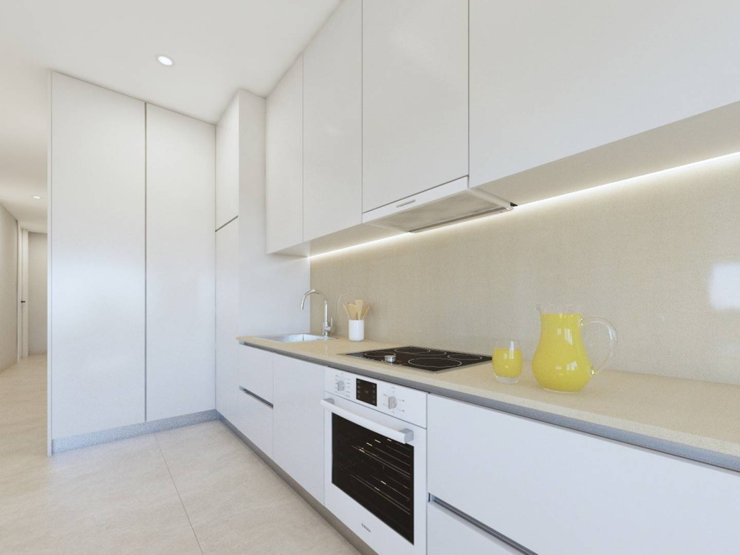 In addition, each home will be equipped with air conditioning and an advanced home automation system that will facilitate home management. The kitchen will include high-end appliances : oven, dishwasher, fridge-freezer, extractor hood and induction hob.