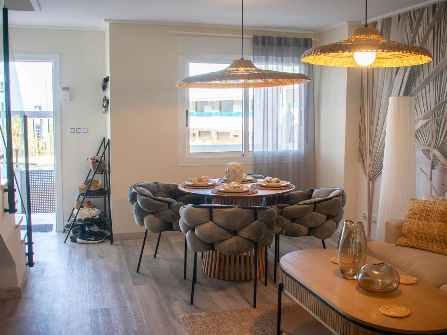 This beautiful two-level townhouse offers the opportunity to live in a brand new home at the price of an apartment, in a gated community and surrounded by stunning views of the sea and the lagoon. With 115 m² built and 80 m² of living space, the property has been tastefully furnished, providing a modern and welcoming atmosphere.