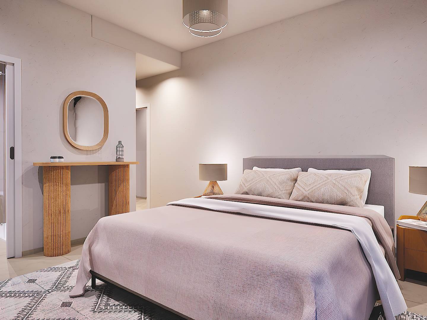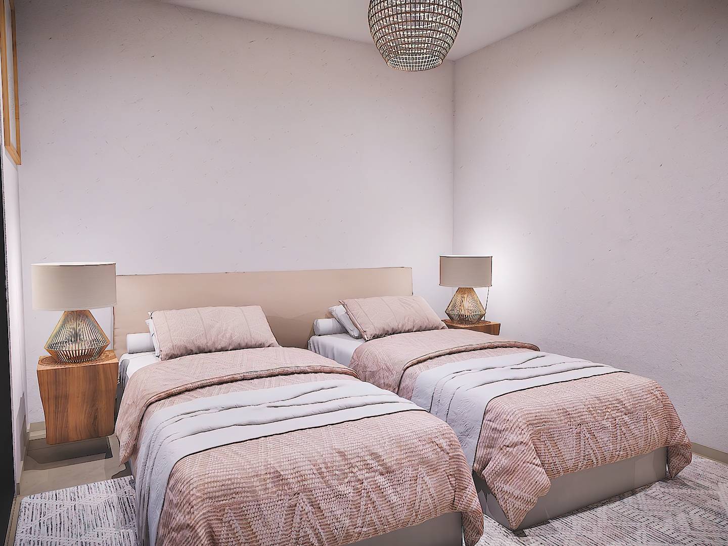 These luxurious 2 or 3 bedroom, 2 bathroom apartments are located just 650 metres from the beaches of Mar De Cristal. Each features a spacious living room that connects to a modern open kitchen and large sliding windows, allowing direct access to the front terrace. From there, beautiful mountain views can be enjoyed, while the penthouses offer fantastic sea views. The price of these properties includes an underground parking space and a storage room, adding convenience and functionality.
