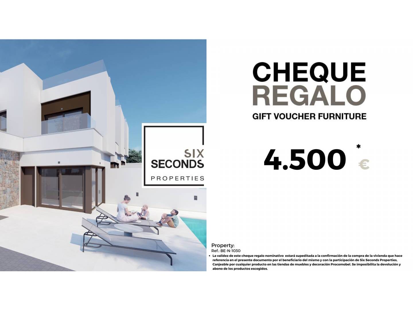 From our real estate agency we help you turn your new property into the house of your dreams, giving you a gift voucher worth €4,500 in furniture and a technical visit to the property by the design department , where our technical team will advise you on the possibilities of improvement and decoration of your property. Totally free!!