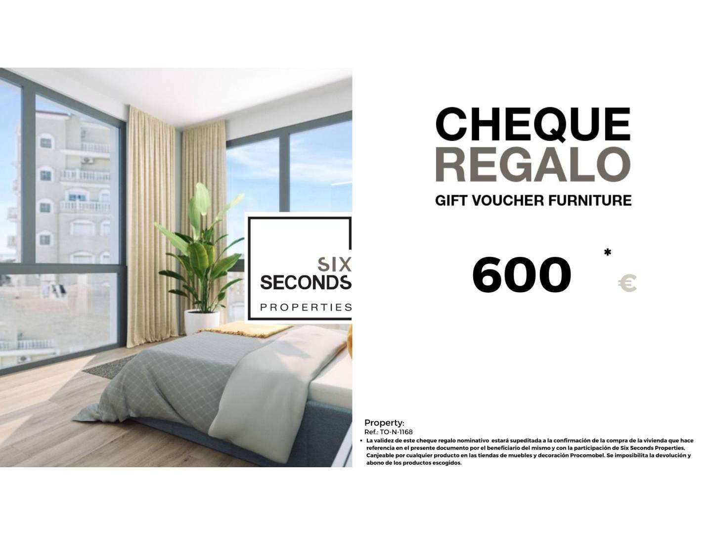 At Six Seconds Properties, we help you transform your new property into your dream home by giving you a €600 furniture gift voucher and a free property inspection , where our technical team will advise you on potential improvements. Completely free!