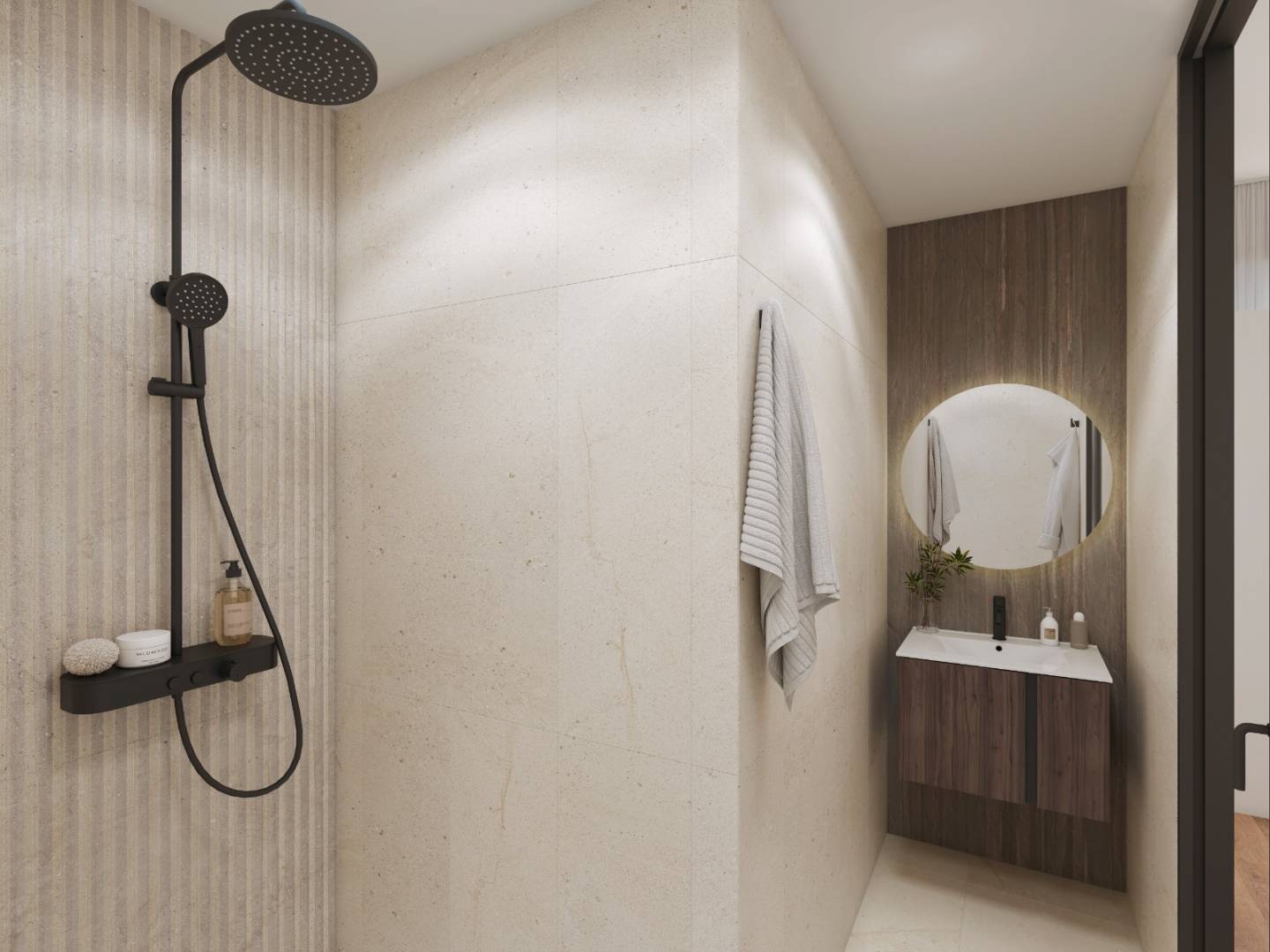 The properties are offered in two different models, both with exclusive Porcelanosa finishes on floors, tiles, bathrooms and kitchen. High-end appliances include a dishwasher, fridge-freezer, microwave oven and induction hob with integrated extractor, all from the Balay brand. Showers and taps are in elegant matt black, complemented by wall-hung toilets. The layout is carefully designed, incorporating a laundry room, guest toilet, spacious terraces and the garden with private pool.