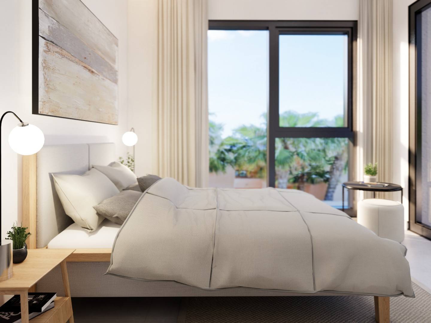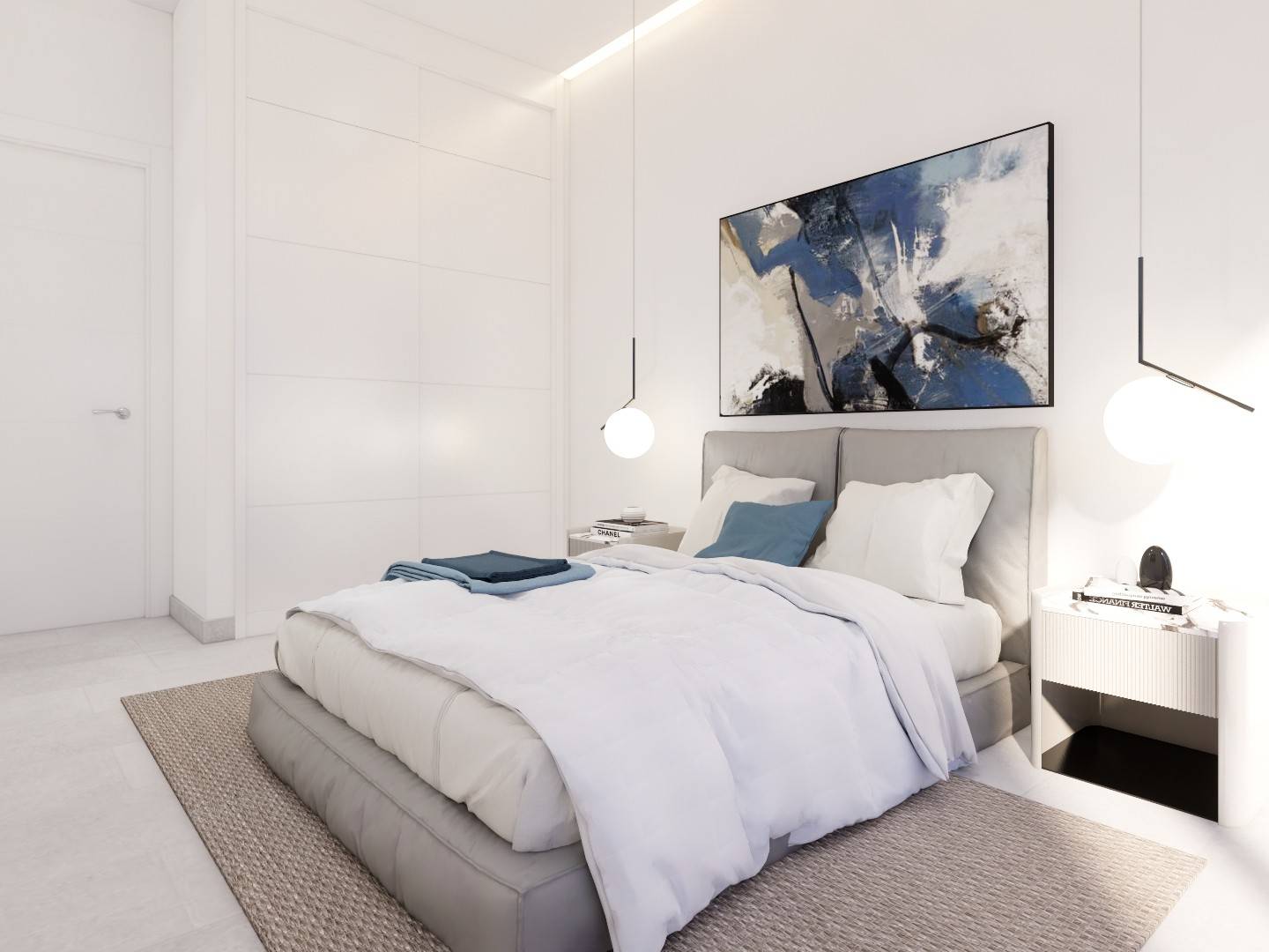 Each villa sits on a 300 m² plot and features three spacious bedrooms, designed to maximize natural light and provide a relaxing environment. Large balconies off each bedroom and terraces provide uninterrupted sea views. The properties also include three bathrooms and a spacious rooftop solarium, where a Jacuzzi invites you to enjoy the best views in total privacy. These villas also come equipped with air conditioning and a high-end kitchen, fully equipped with state-of-the-art appliances, perfect for those who value comfort and functionality in their daily lives.