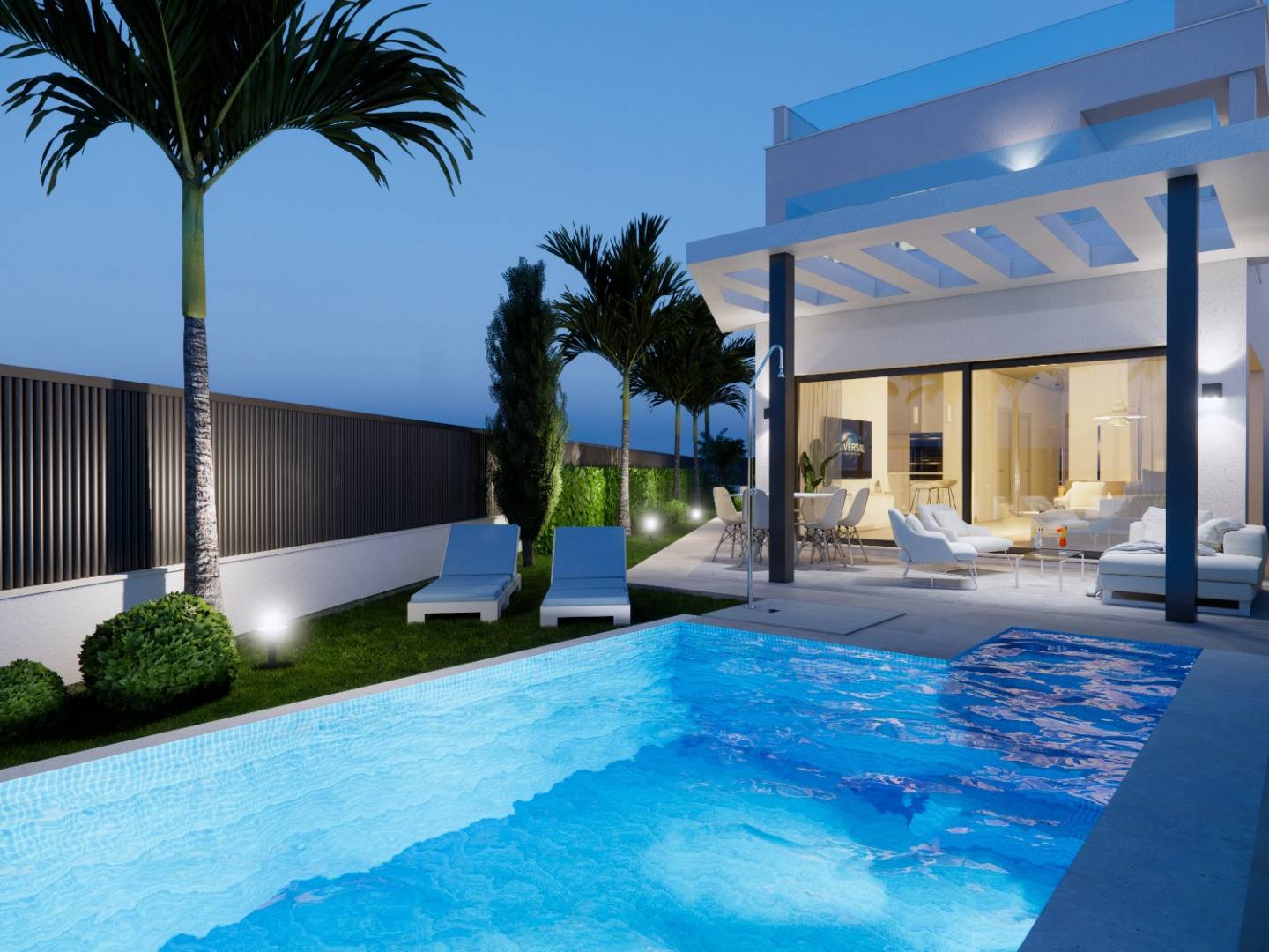 Introducing these luxury villas in the exclusive Nueva Ribera Beach Club complex, on the beachfront in Los Alcázares, offering a unique beachfront lifestyle. With a 4-kilometer promenade and spectacular views stretching to the La Manga skyline, these properties stand out for their privileged location and high-quality finishes.