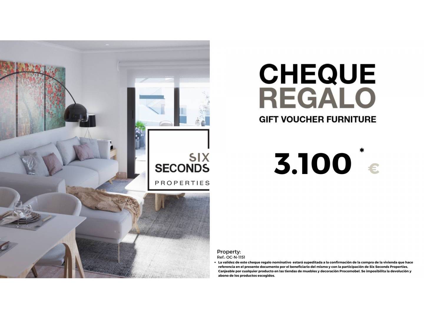 At Six Second Properties (965059685) we help you transform your new home into the home of your dreams by offering you a gift voucher of €3,100 in furniture and a technical visit to the home design office, where our technical team will guide and advise you on ways to improve and decorate your property. Totally free!!