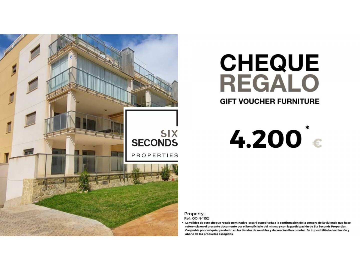 At Six Seconds Properties we help you turn your new property into the home of your dreams, giving you a gift voucher for furniture worth €4,200 and a technical visit to the property, where our technical team will advise you on the possibilities of improving the home. Totally free!!