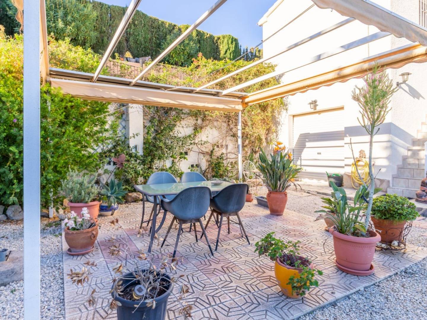 The exterior is a true Mediterranean paradise. An 8x4 metre swimming pool surrounded by vegetation, a lush garden, and an outdoor dining area covered by an awning create the ideal setting to enjoy the climate and lifestyle of the Costa Blanca.