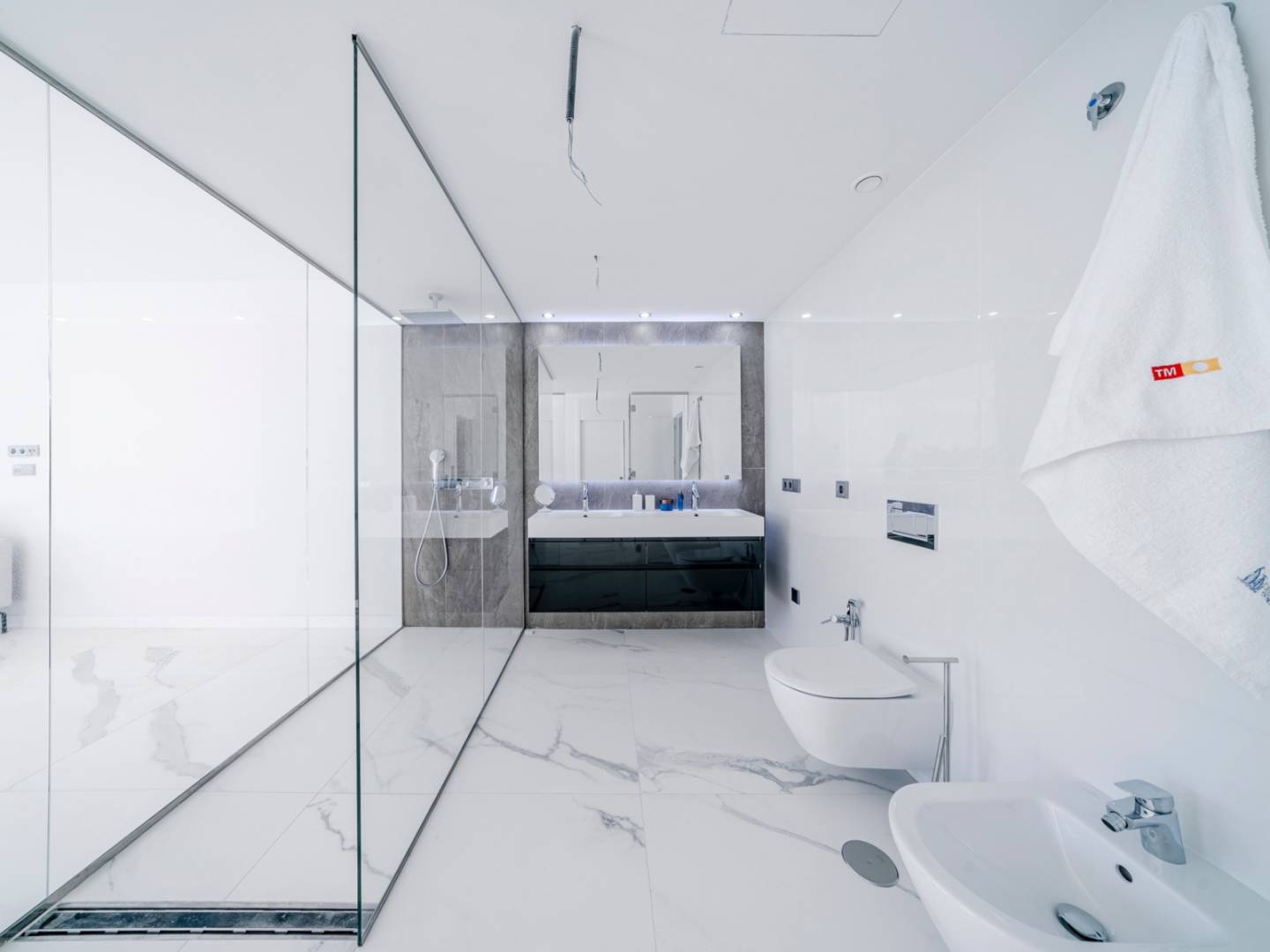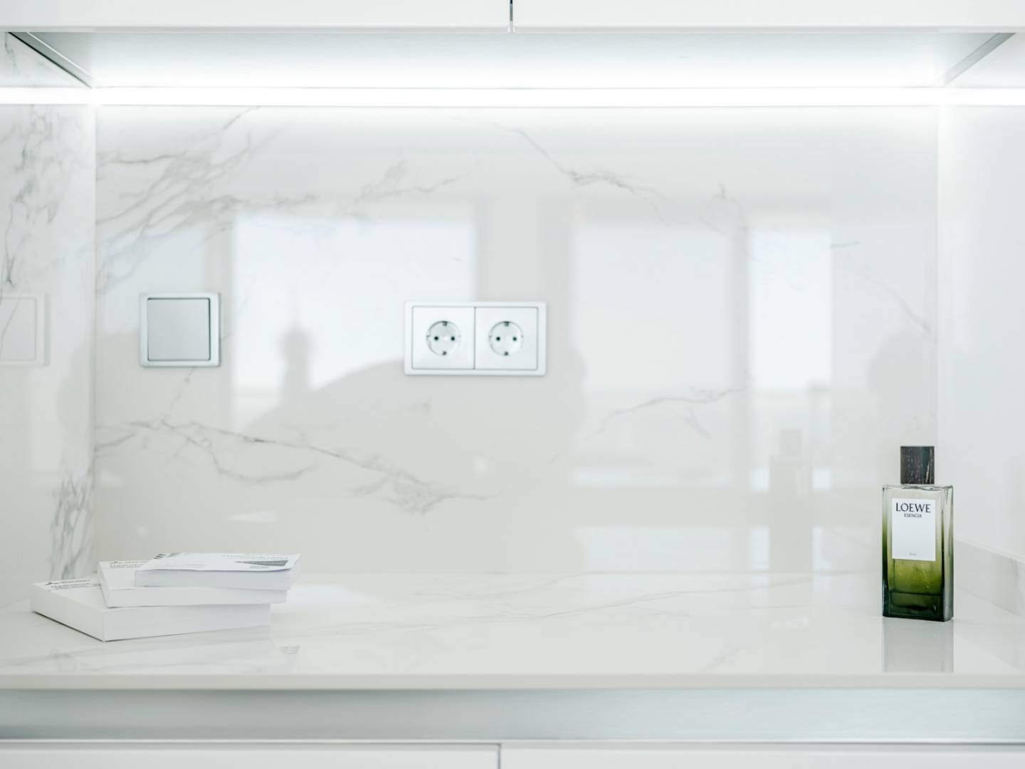 The spacious living area is bathed in natural light, with an open-concept kitchen equipped with high-end Samsung smart appliances and exclusive Porcelanosa finishes. With its impeccable design and premium materials, this space is perfect for both everyday living and entertaining.