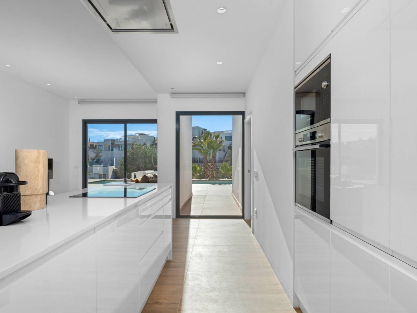 Located in the prestigious Las Colinas Golf & Country Club, one of the most exclusive resorts on the Costa Blanca, this breathtaking villa offers the perfect blend of modern design, high-end finishes, and ultimate living comfort. Designed to maximize enjoyment of the sun and nature, the villa features a southeast orientation and expansive windows that provide panoramic views of the lush surroundings. Upon entering, you are welcomed into a spacious and bright living area, where elegance and functionality blend seamlessly. The open kitchen, equipped with high-quality built-in appliances, flows effortlessly into the stylish living room—a perfect space to unwind in luxury or entertain guests in a sophisticated setting. Villa Layout The villa boasts an impressive master suite on the ground floor, complete with a spacious walk-in dressing room and a luxurious en-suite bathroom. Additionally, this level features two extra bedrooms, sharing a modern bathroom. Each of these rooms offers peace and privacy, with direct access to the outdoor spaces and stunning natural views. In the lower level, you will find an exclusive studio, ideal as a guest retreat or for added privacy. The studio includes a spacious bedroom, a stylish bathroom, and a private wellness area—a sanctuary where you can fully relax and recharge. Outdoor Living & Technology The southeast-facing garden is designed for ultimate outdoor enjoyment. The heated private pool invites you for a refreshing swim any time of the year, while the expansive terraces provide the perfect setting for long summer evenings. This villa is equipped with the latest modern technologies, including a smart home automation system, allowing you to easily control lighting, climate, and security. The Airzone climate control system ensures perfect indoor comfort in every room, while the automatic shutters provide extra convenience and privacy. Additionally, solar panels make this home more energy-efficient and sustainable. For your convenience, the villa offers a private parking area for two cars, ensuring a safe and comfortable space for your vehicles. Moreover, the property is fully furnished, including luxurious furniture worth €30,000—every detail is meticulously finished and ready for immediate move-in. Living in Las Colinas Golf & Country Club means enjoying a top-tier lifestyle. In addition to its award-winning golf course, the resort offers various sports facilities, fine dining restaurants, and a serene, secure environment. Furthermore, the stunning sandy beaches of the Costa Blanca are just a short drive away, allowing you to experience the best of both worlds—tranquility and exclusivity, with the Mediterranean Sea within easy reach. Are you looking for a luxurious villa with space, privacy, and an exceptional location? Contact us today to schedule a viewing and experience this unique living opportunity for yourself!