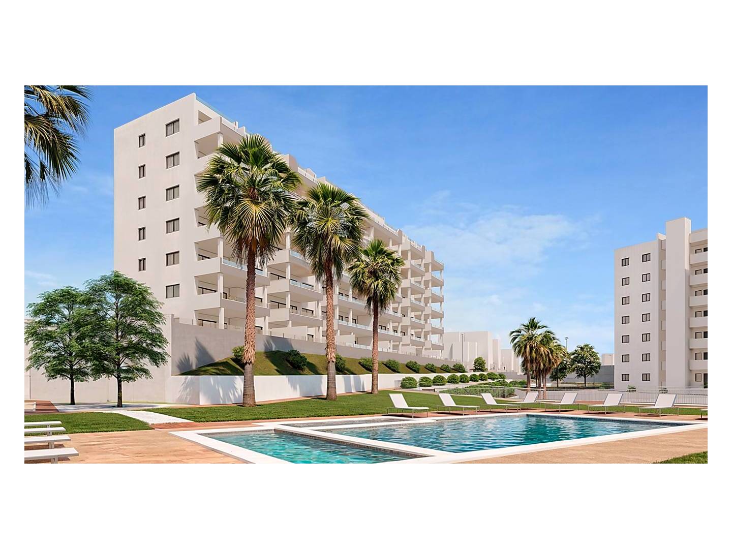 Discover this luxury development made up of 5 blocks with a total of 222 apartments, designed to offer maximum comfort and quality of life. Each block surrounds an impressive 3-level garden, creating a natural and relaxing environment with 3 communal swimming pools for the enjoyment of the whole family.