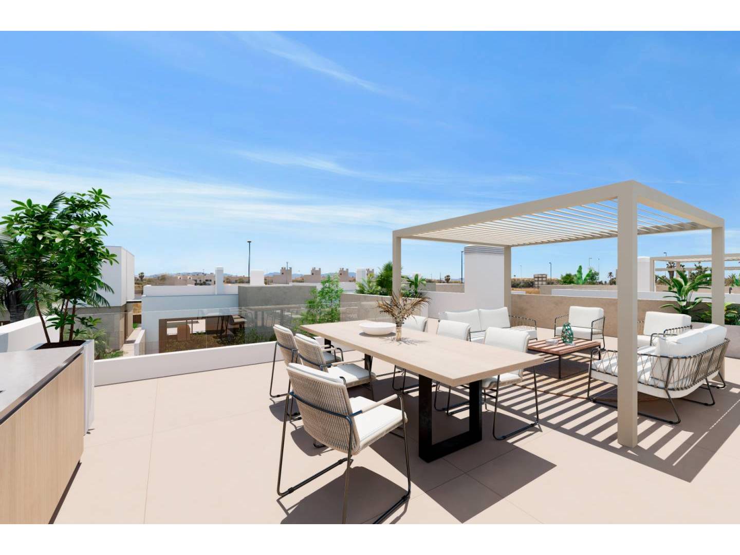 Located just meters from the prestigious Serena Golf Course and minutes from the beaches of the Mar Menor and La Concha Beach in Los Alcázares, this development offers a unique opportunity to live in one of the most sought-after areas. The project offers a wide variety of homes adapted to different lifestyles: ground-floor bungalows with private gardens of up to 122 m², upper-floor bungalows with private terraces and solariums, and three types of single-family villas with plots ranging from 201 m² to 356 m², with one- or two-story options.