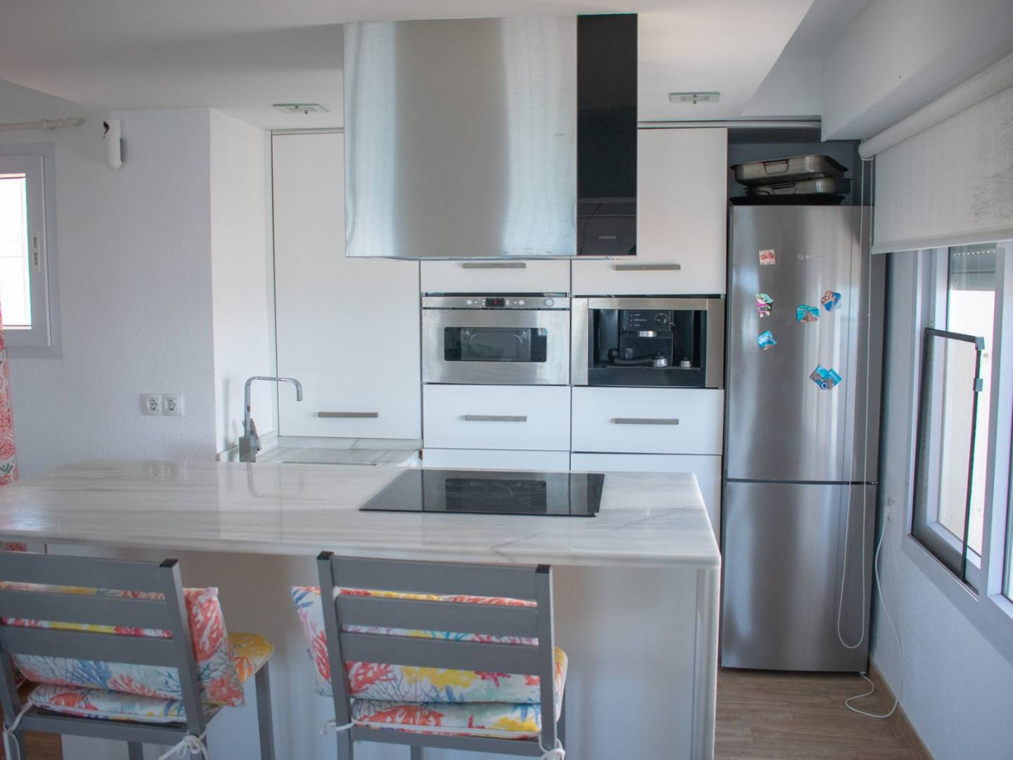 Its high-quality finishes stand out, with wood-effect floors and marble walls . From the living room , you can access a spectacular terrace with panoramic views of the Mar Menor , a true viewpoint overlooking paradise .