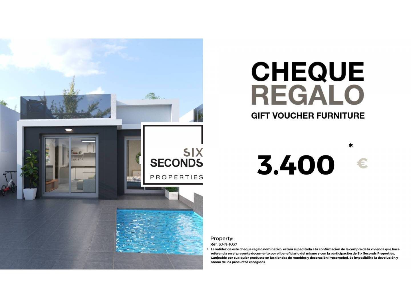 At Six Seconds Properties, we'll help you turn your new property into the home of your dreams by giving you a €3,400 furniture gift voucher and a technical visit to the home, where our technical team will advise you on home improvement options. Completely free!