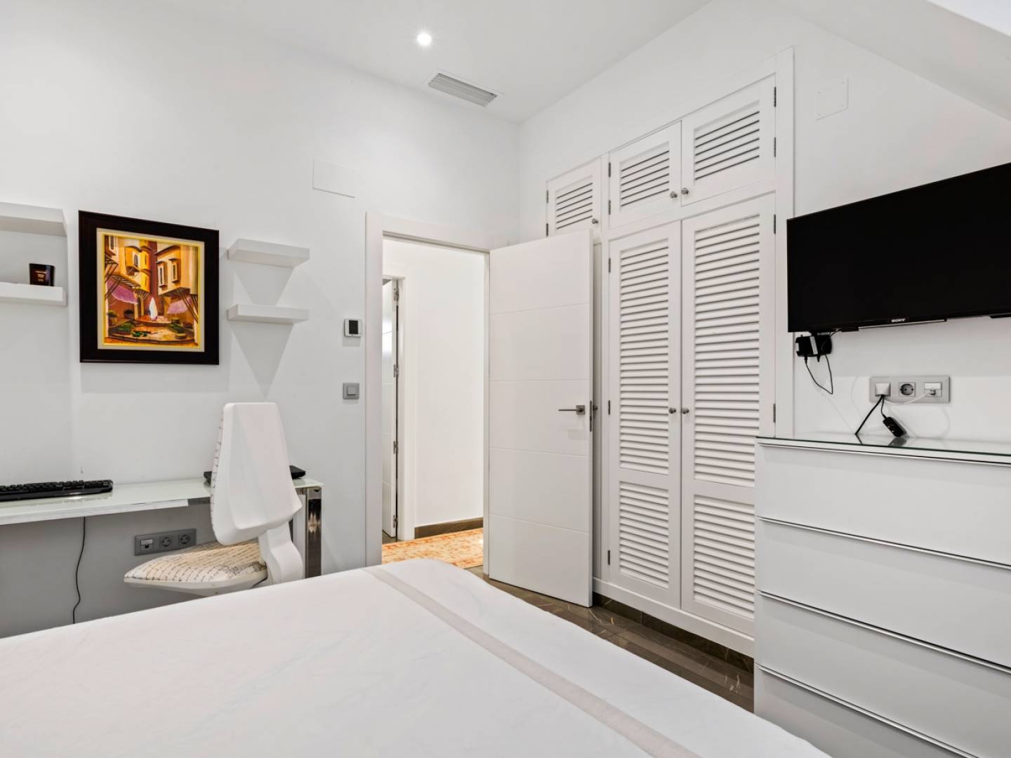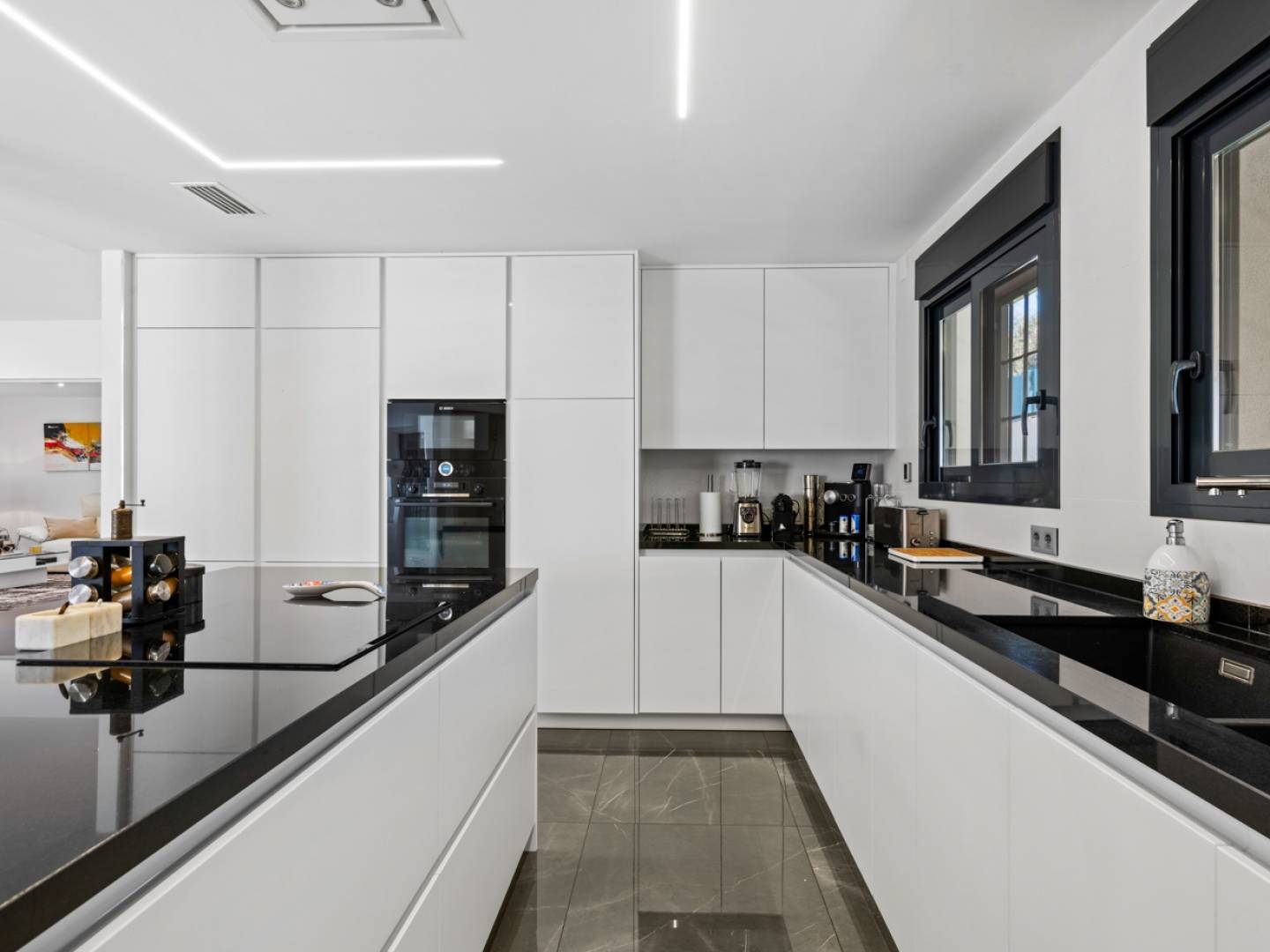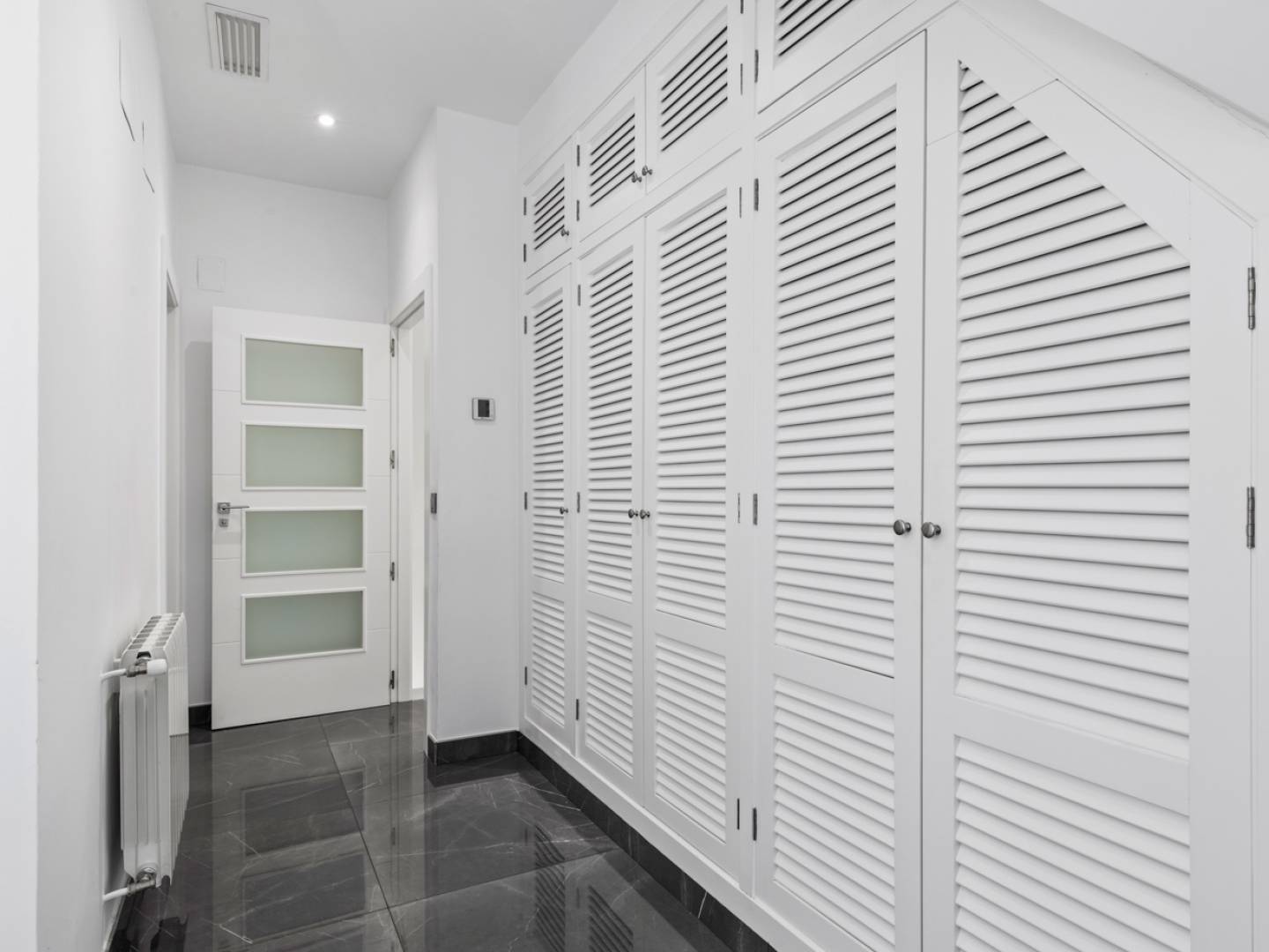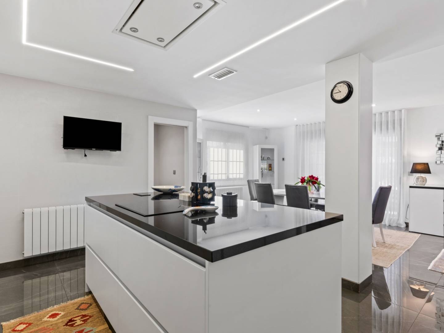 Luxury 5 bedroom villa in one of the most sought after residential areas in Playa San Juan, Alicante. The villa is set over three levels and consists of a total of 5 double bedrooms and 3 bathrooms. In the main floor you can find a large and bright living room, an entrance area, an open plan dining room and kitchen. The kitchen has an island and direct access to a laundry room and the garage. On this floor you can also find a bathroom and a bedroom, which is currently being used as an office. The first floor consists of 4 double bedrooms and 2 bathrooms, where the master bedroom has a large en-suite bathroom and walk-in closet. All the other bedrooms have fitted wardrobes. The villa also has a basement with a storage room and a movie room. The villa is equipped with air condition (hot/cold) throughout, central heating on gas, smart-home system and smart entrance door which can be opened with code or with keys. At the entrance you also have a central switch to all the blinds in the house. In the garden you can find a lovely pool, and next to it an outdoor kitchen equipped with BBQ, sink, fridge and cabinets. Here you also have a dining area. Behind the outdoor kitchen is a guest bathroom. In the garden you can also find parking on the plot for 3 cars, in addition to the large garage. Both the garage door and gate from the street are automatic. Furthermore, in the garden you can find a large area with artificial grass, perfect for a play area. There is also a herb garden and a covered terrace with a lounge area. The villa is located in an exclusive area of Alicante, with short distance to all amenities.