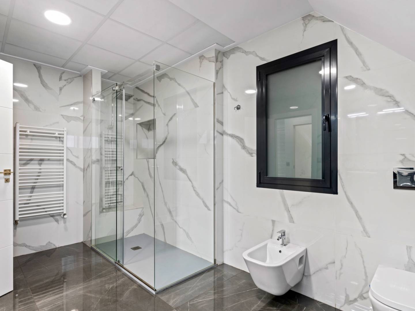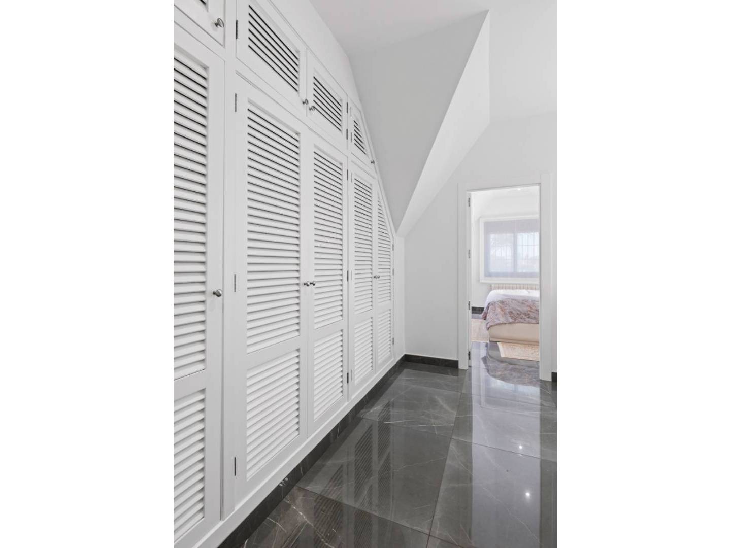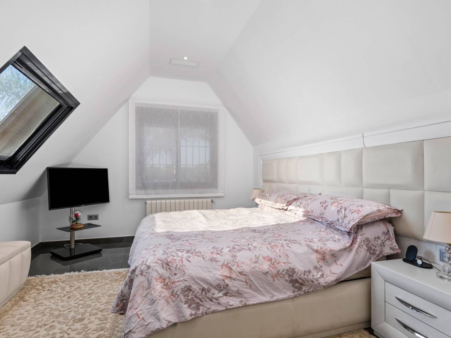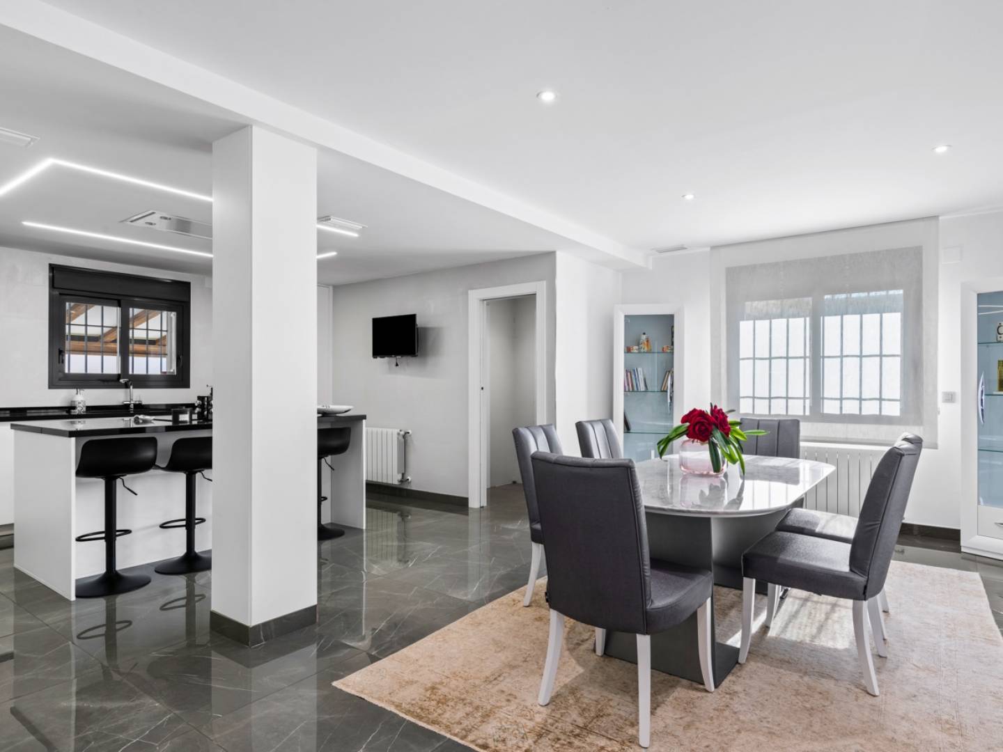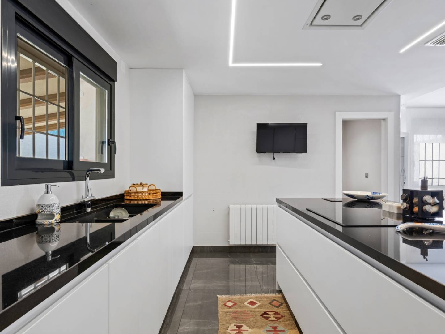 Luxury 5 bedroom villa in one of the most sought after residential areas in Playa San Juan, Alicante. The villa is set over three levels and consists of a total of 5 double bedrooms and 3 bathrooms. In the main floor you can find a large and bright living room, an entrance area, an open plan dining room and kitchen. The kitchen has an island and direct access to a laundry room and the garage. On this floor you can also find a bathroom and a bedroom, which is currently being used as an office. The first floor consists of 4 double bedrooms and 2 bathrooms, where the master bedroom has a large en-suite bathroom and walk-in closet. All the other bedrooms have fitted wardrobes. The villa also has a basement with a storage room and a movie room. The villa is equipped with air condition (hot/cold) throughout, central heating on gas, smart-home system and smart entrance door which can be opened with code or with keys. At the entrance you also have a central switch to all the blinds in the house. In the garden you can find a lovely pool, and next to it an outdoor kitchen equipped with BBQ, sink, fridge and cabinets. Here you also have a dining area. Behind the outdoor kitchen is a guest bathroom. In the garden you can also find parking on the plot for 3 cars, in addition to the large garage. Both the garage door and gate from the street are automatic. Furthermore, in the garden you can find a large area with artificial grass, perfect for a play area. There is also a herb garden and a covered terrace with a lounge area. The villa is located in an exclusive area of Alicante, with short distance to all amenities.
