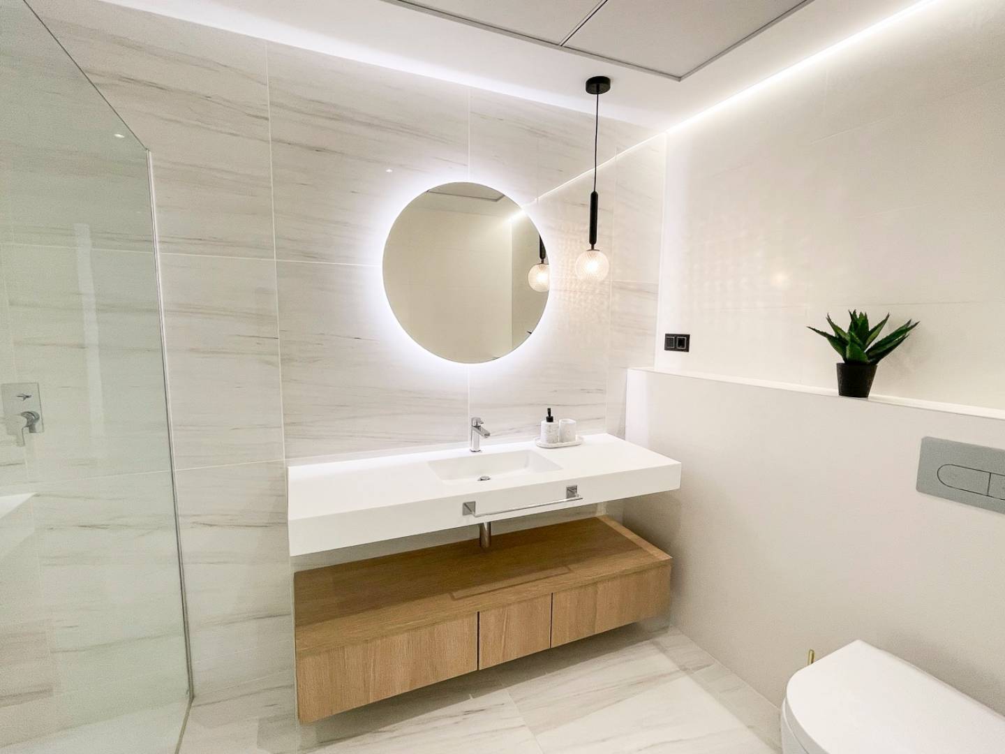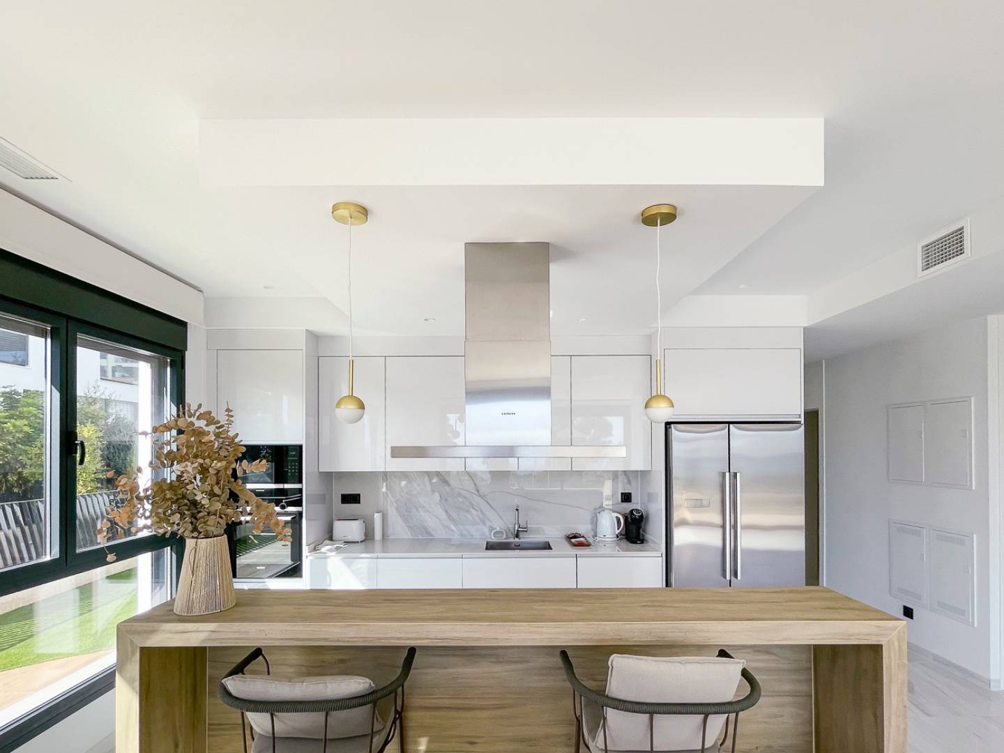 This 124m² apartment, built in 2022, is located in a gated community on the beachfront, offering a peaceful and comfortable lifestyle on the Costa Blanca. The property features 3 spacious bedrooms and 3 full bathrooms, designed with high-quality materials and a modern finish. A 48m² terrace provides spectacular sea views and overlooks the lush green areas of the complex, creating an ideal space for relaxation or outdoor dining. The apartment is fully furnished and equipped for comfort, including air conditioning, ceiling fans, and built-in wardrobes. The layout is functional, ensuring plenty of natural light and efficient use of space. The community offers excellent facilities such as a designer communal pool, tropical gardens, and green spaces. Additionally, the property includes a private pool and a private garden for added exclusivity. For convenience, the apartment comes with a private double garage and a storage room. Security is ensured with an alarm system and controlled access to the community. With an east-facing orientation, this home provides breathtaking sunrise views over the sea and a serene environment to enjoy coastal living. Located in Villajoyosa, a growing destination on the Costa Blanca, this apartment is an excellent choice for those looking for a stylish and private home by the sea.