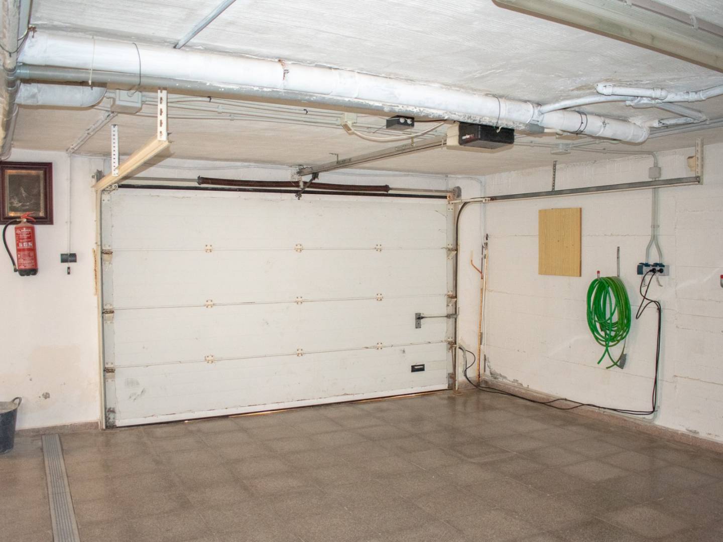 The basement offers a comfortable living area with a fireplace , a guest room , a storage room , a large garage , and multifunctional space for leisure or storage.
