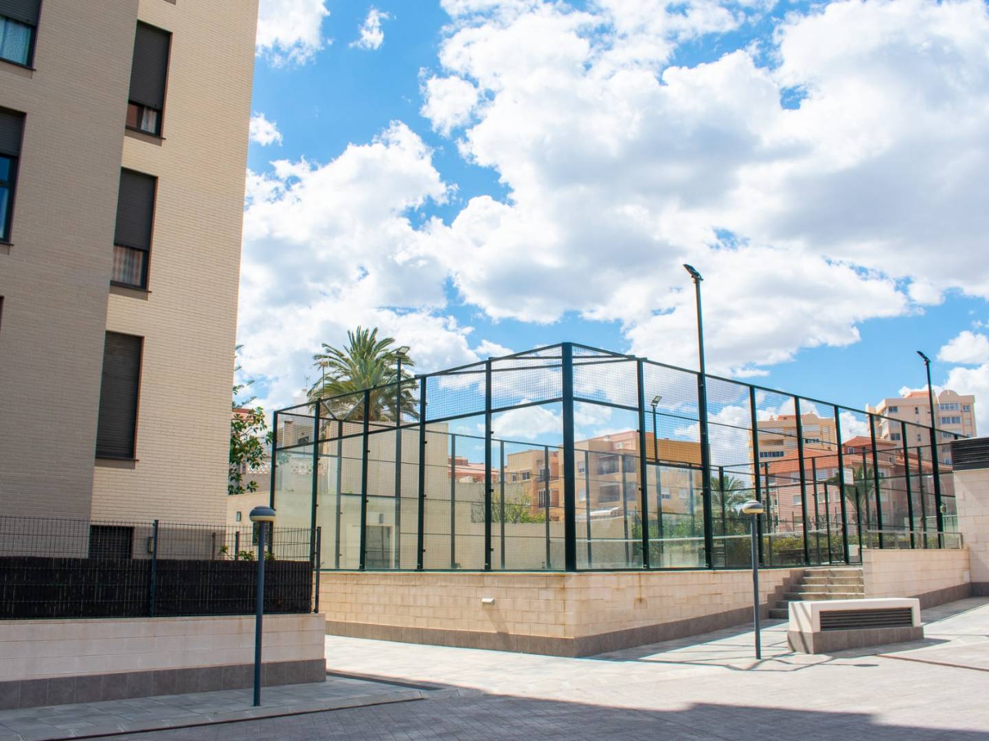 The common areas offer everything you need to enjoy all year round: communal pool , paddle tennis court , children's playground and garden spaces .