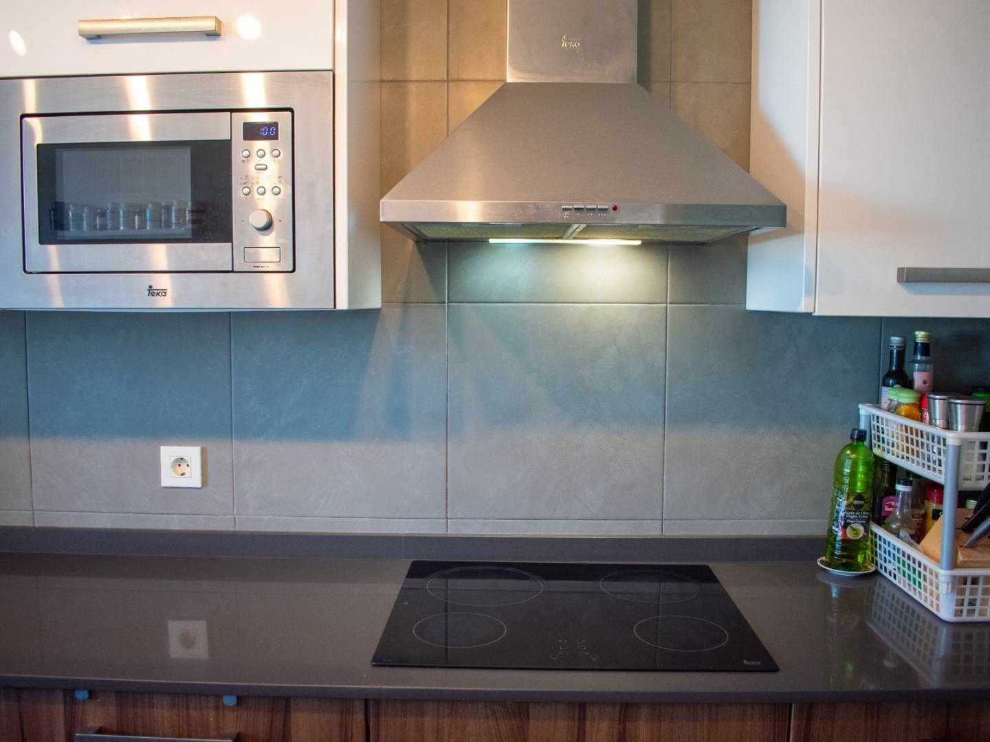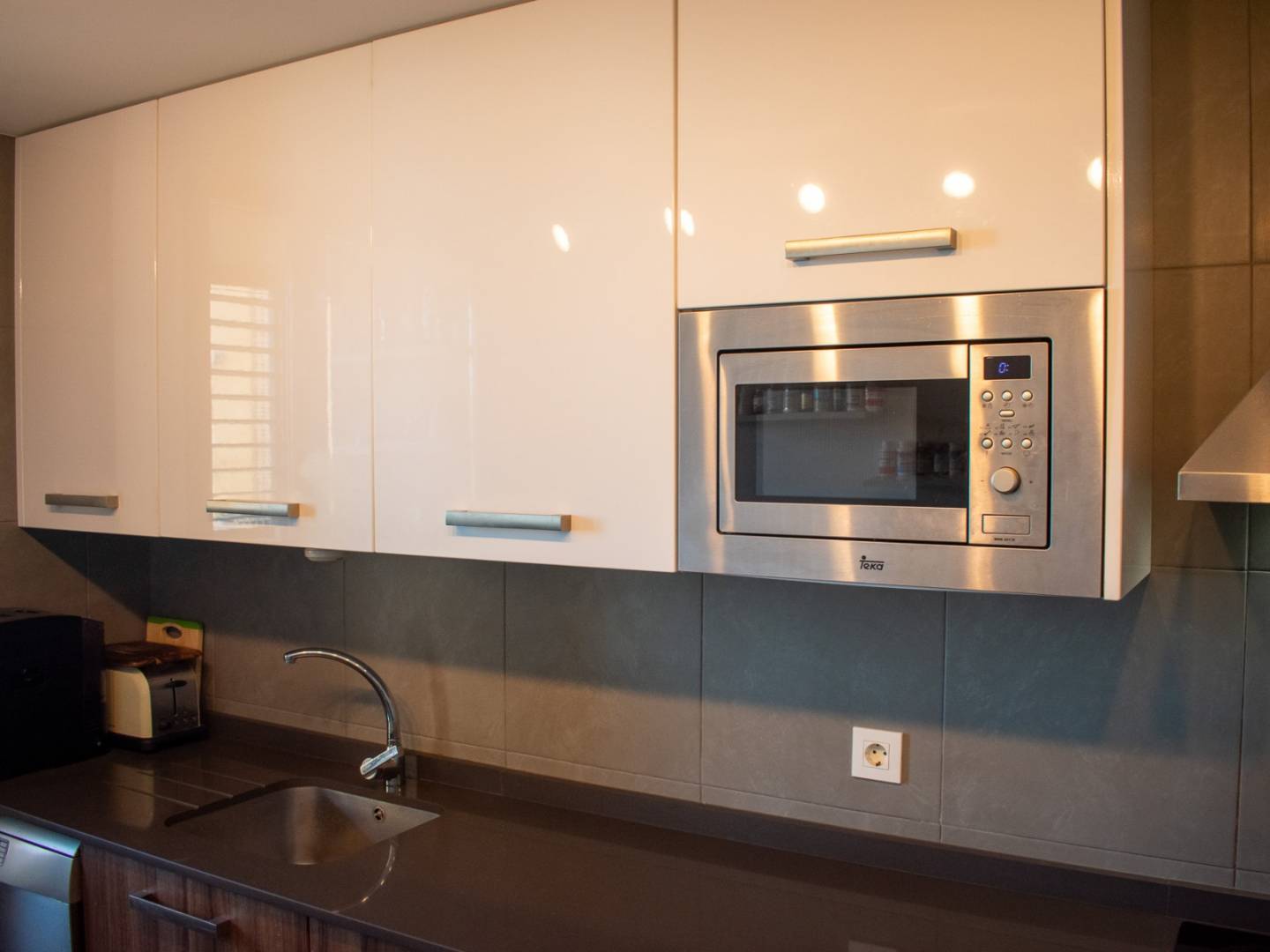 The separate kitchen is fully equipped, spacious, and has excellent storage capacity.