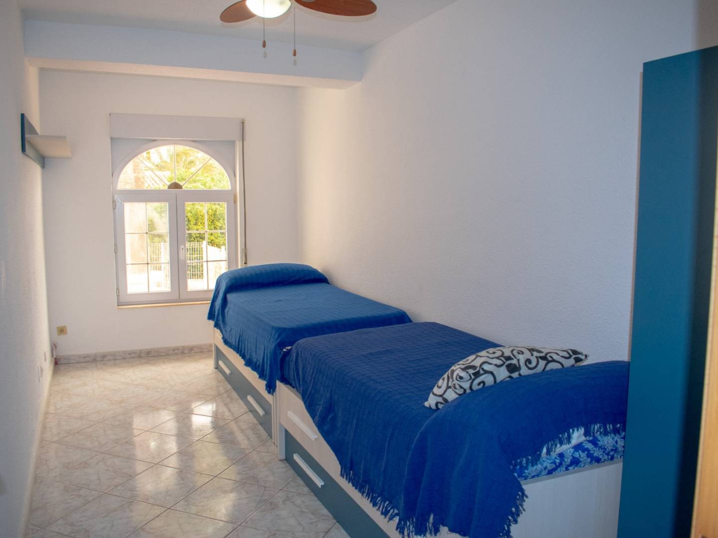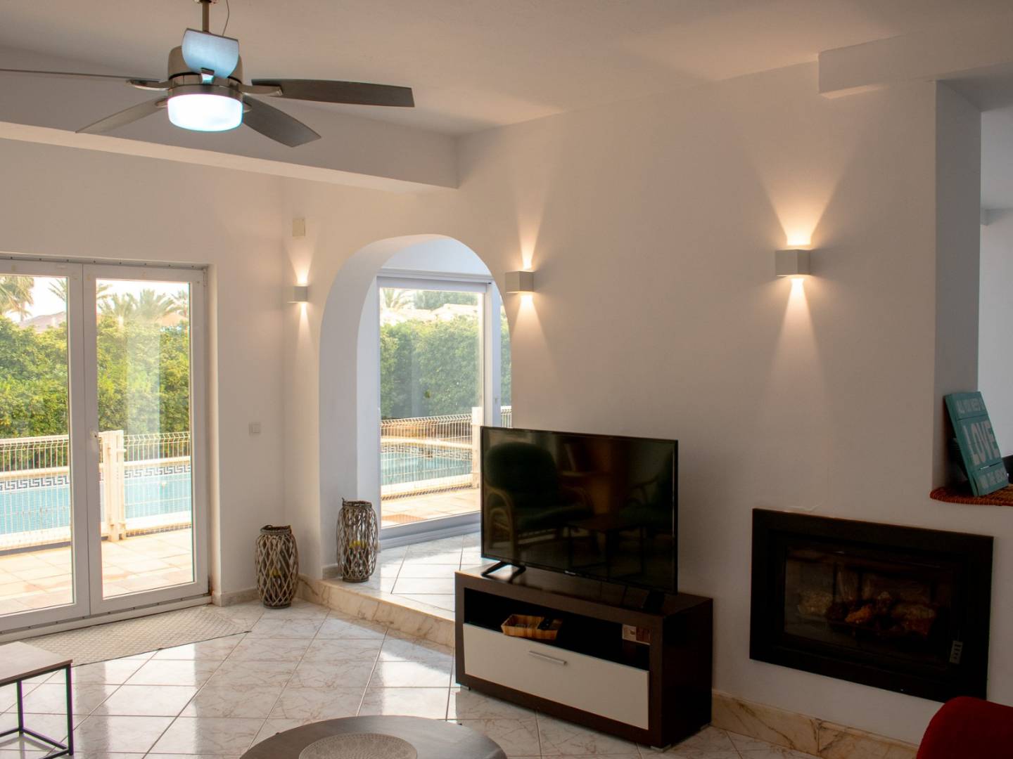 The villa was originally built in 1986 , with a modern extension in 2016 that brings functionality and contemporary style without losing the charm of its traditional white facade.