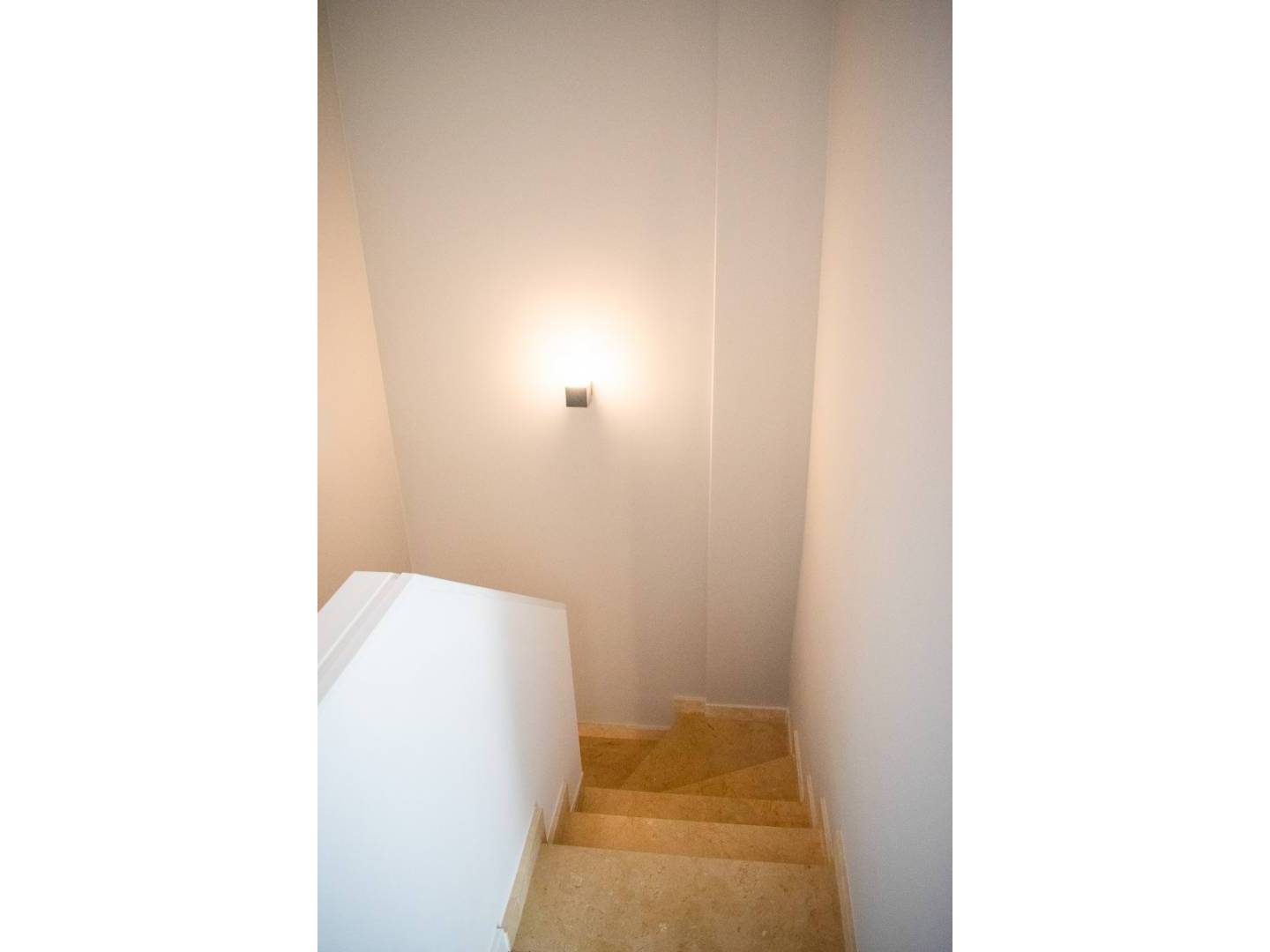 Upstairs is the bright master bedroom , equipped with a work area , double bed , built-in wardrobes, and air conditioning. The third bedroom has two single beds , sea views, air conditioning, and a wardrobe. The second bathroom features a spacious shower and elegant finishes.
