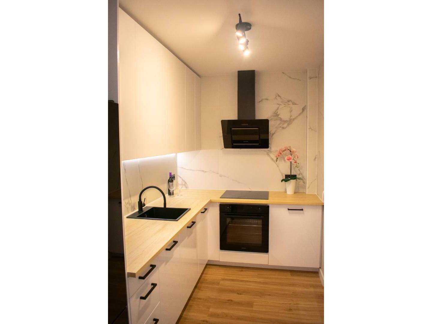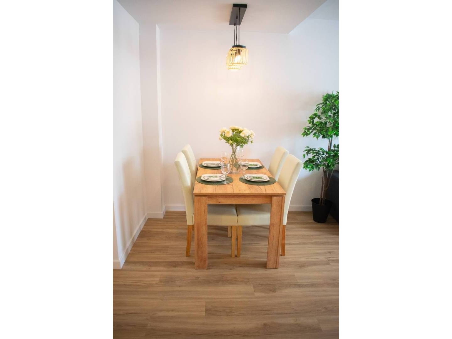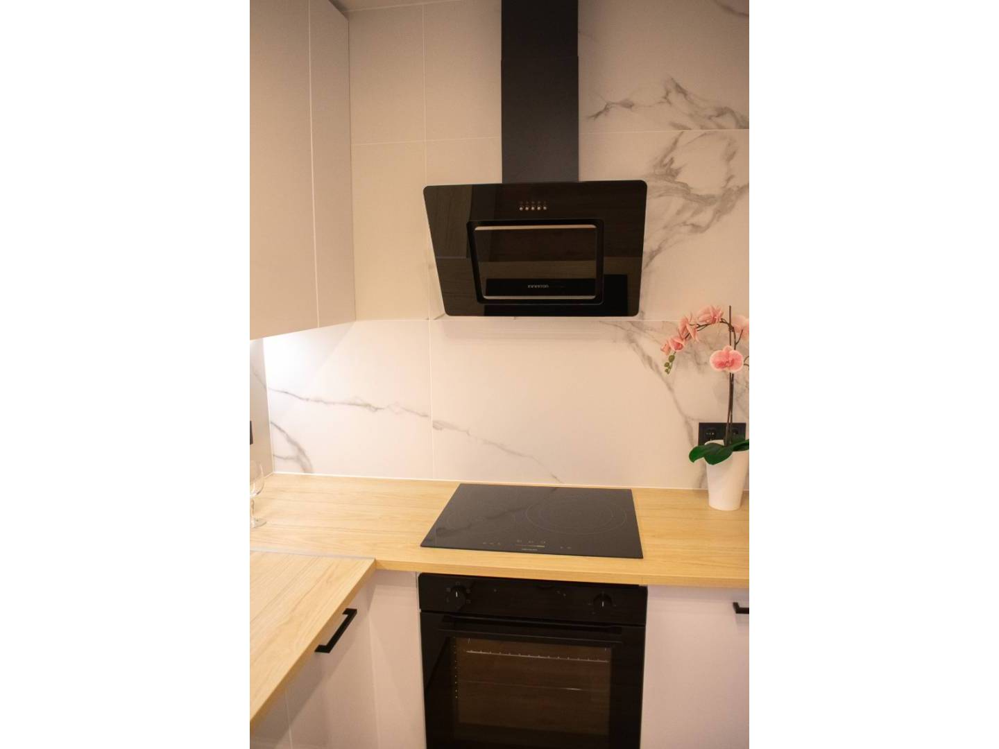 With three bedrooms (two upstairs and one downstairs) and two bathrooms, this townhouse offers functional and well-organized spaces. Downstairs, there is a spacious and comfortable living room with a sofa bed, air conditioning, and a large dining table . The modern kitchen is fully equipped with new appliances and ample cupboards . There is also a double bedroom , a bathroom with a modern shower , a utility room , and a storage room .