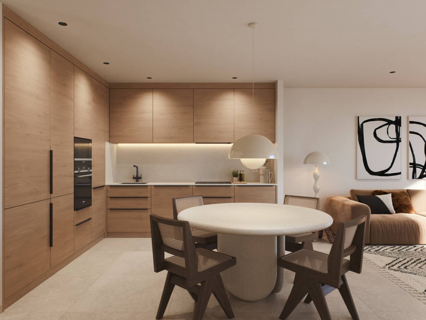 Discover a residential enclave of contemporary elegance where comfort and design blend seamlessly. At Six Seconds Properties, we present this sophisticated development comprised of two blocks of 2- and 3-bedroom apartments, each with two full bathrooms and an additional guest toilet. The spacious and bright rooms include a living-dining room and a kitchen equipped with high-end finishes.