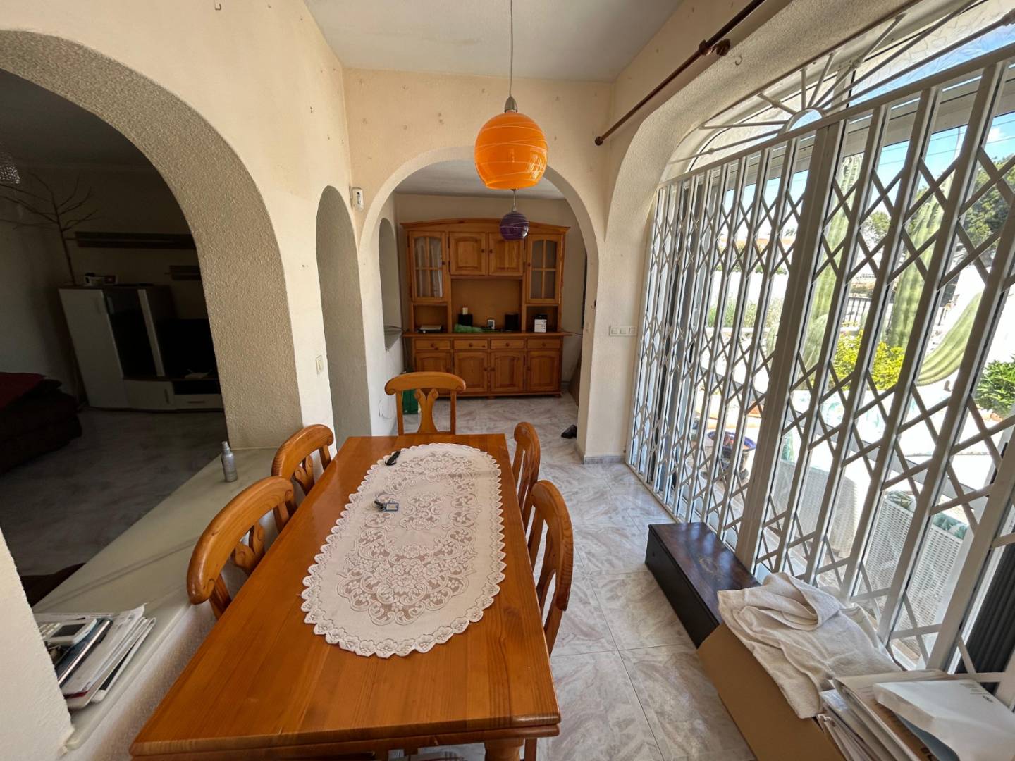 REFERENCE: 015 Property information We present to you a 114 m² townhouse on a 287 m² plot in the San Luis urbanization (Torrevieja, Alicante): - 2 bedrooms - Fully equipped kitchen - Spacious living room - Terrace with direct access to a private pool - private parking space The development offers a peaceful atmosphere, with all necessary amenities and the beach within walking distance. An ideal option for comfortable year-round living or a seaside holiday! VIDEO