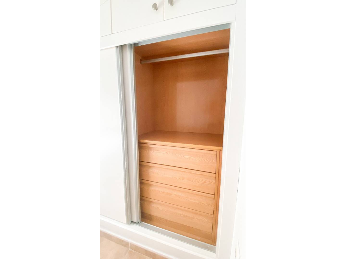 The spacious, open-plan living room connects to a front terrace, ideal for enjoying breakfast in the sun , while a practical utility room is located at the rear. The fully equipped kitchen, only eight years old, is in excellent condition. All rooms feature lined built-in wardrobes , white lacquered doors , and modern terrazzo and ceramic tile flooring.