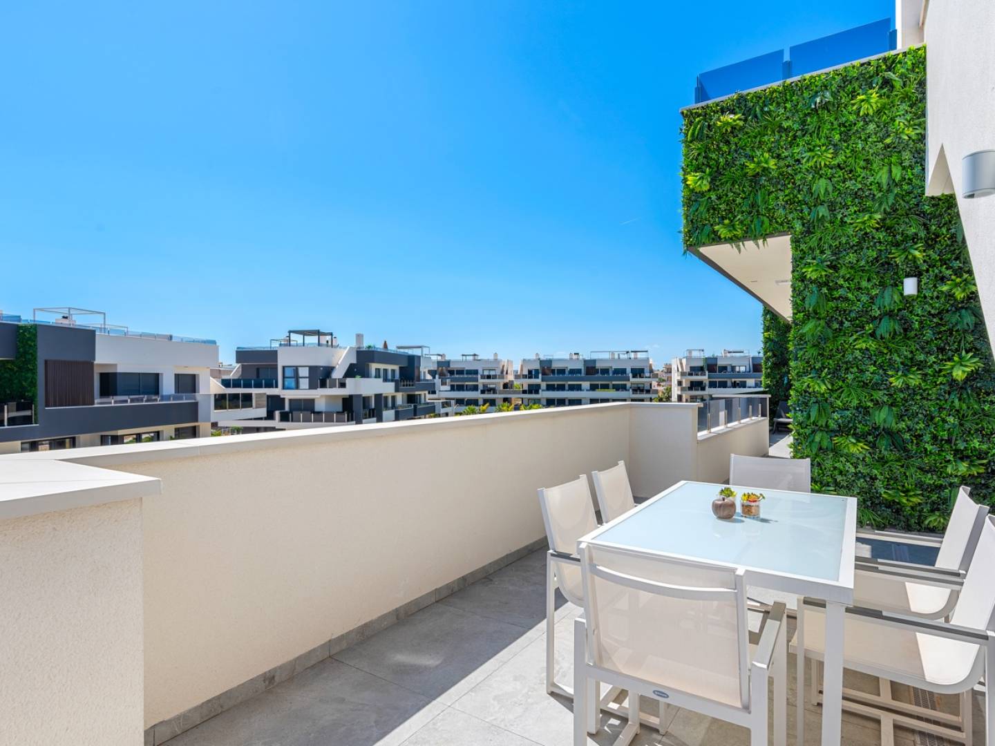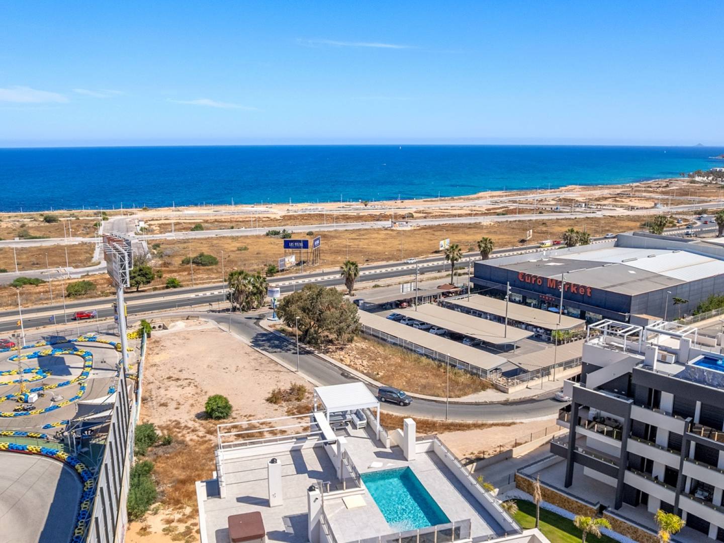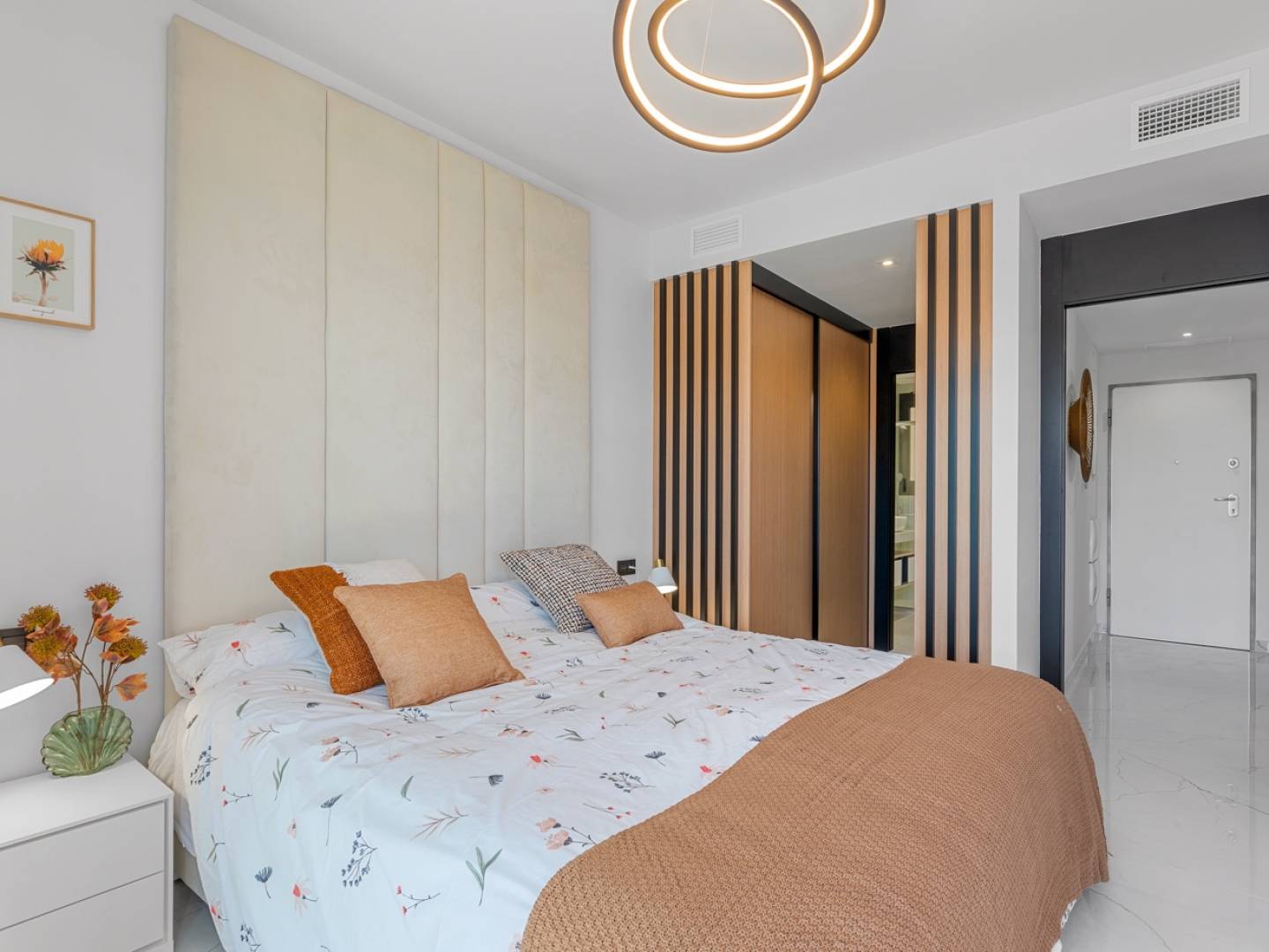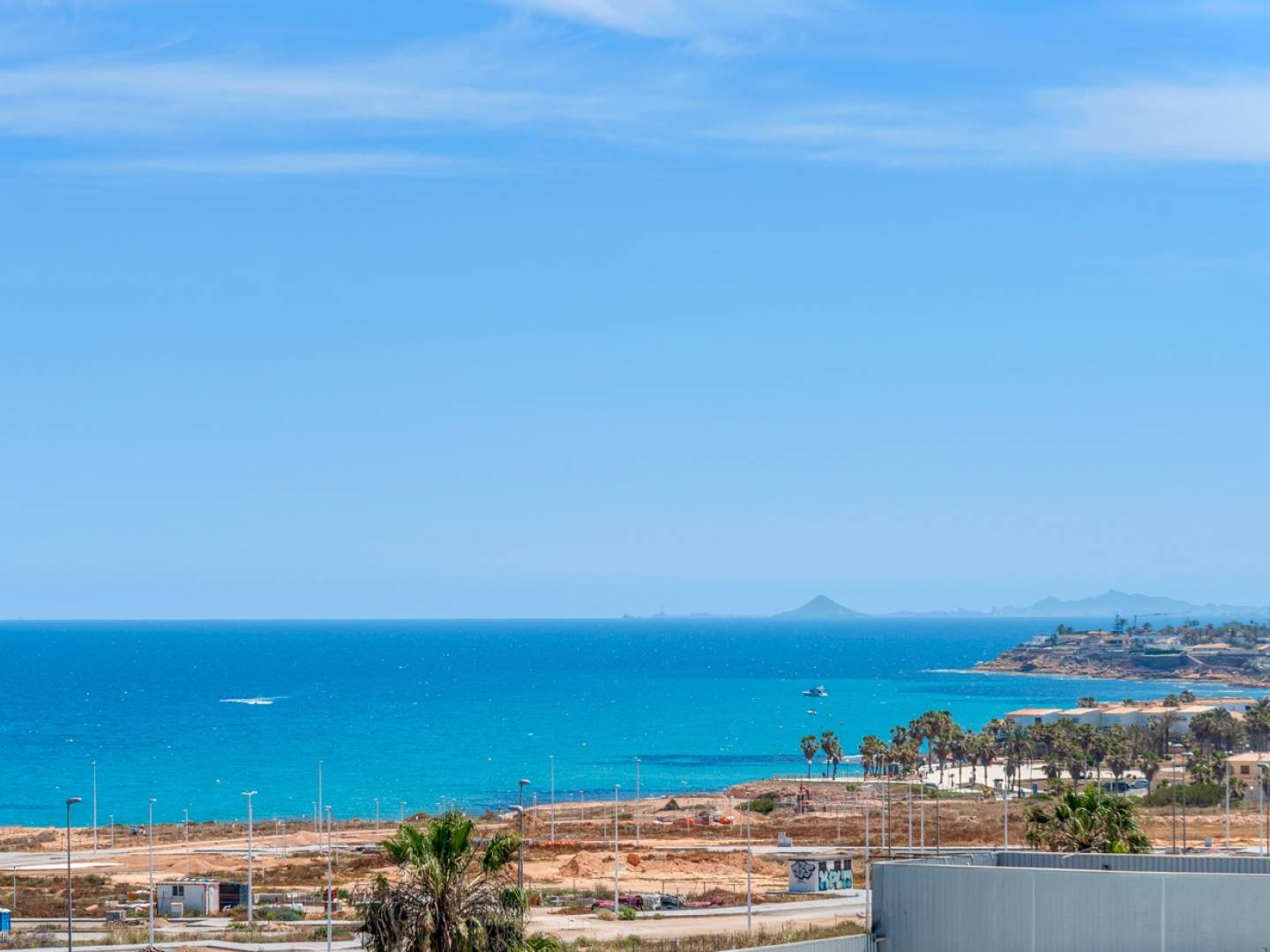 Located in the exclusive Amanecer Deluxe residential complex, this two-storey apartment offers an excellent combination of location, comfort and sea views. Situated in Orihuela Costa, just steps from the Mediterranean and close to all essential services, it is ideal as a permanent residence or holiday investment. The property features three bedrooms, two bathrooms (one en suite), an independent kitchen, and a spacious living-dining area. All rooms, including the kitchen, have direct access to a continuous balcony with sea views and space to sit and enjoy the outdoors. It is sold fully furnished and equipped with high-quality materials: PVC windows with electric shutters, underfloor heating in bathrooms, and modern finishes. On the upper floor, you'll find a private solarium with a swimming pool, perfect for relaxing in complete privacy. The apartment also includes a large, enclosed parking space within the complex. The residential offers communal green areas, a swimming pool and a children's playground, all in a quiet and well-maintained setting.