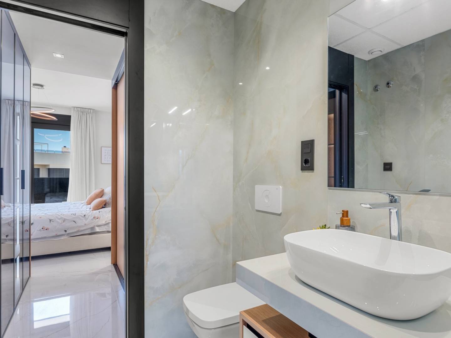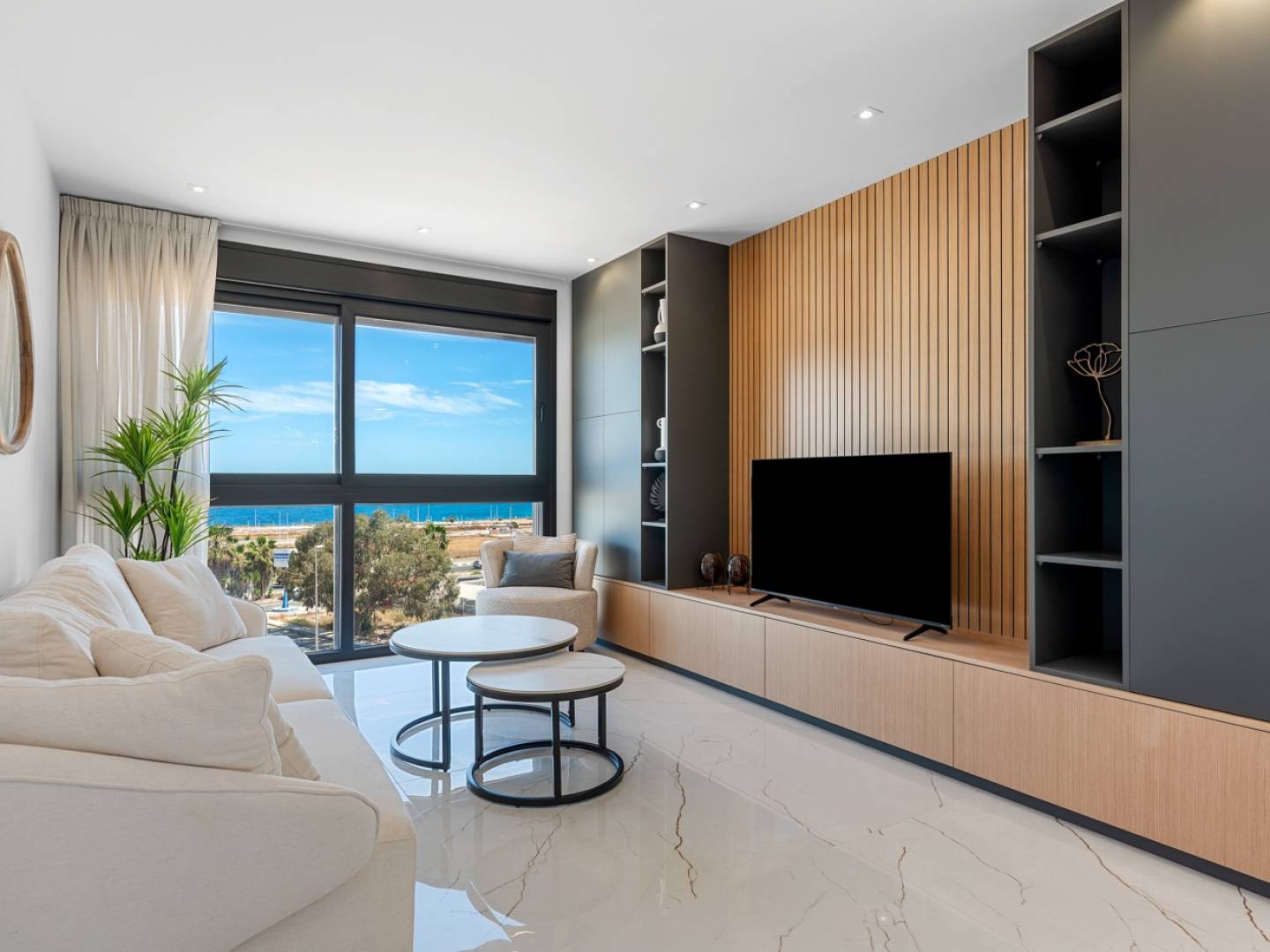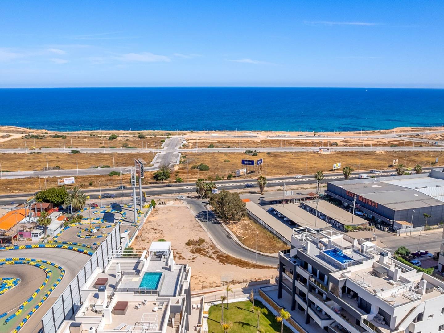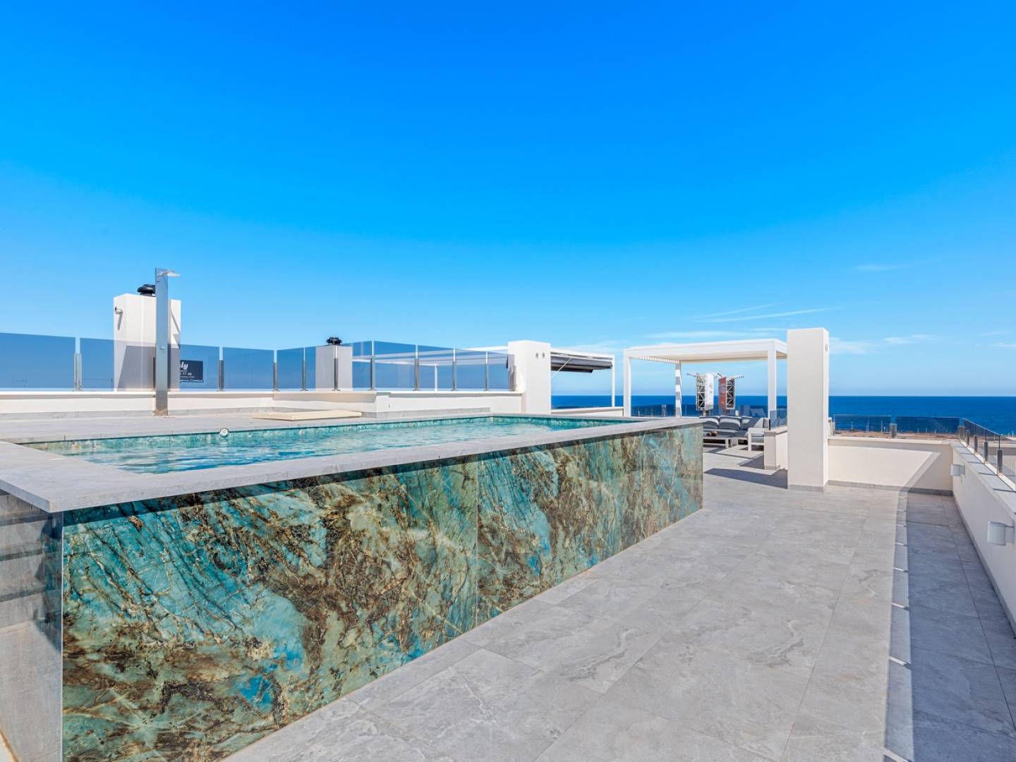 Located in the exclusive Amanecer Deluxe residential complex, this two-storey apartment offers an excellent combination of location, comfort and sea views. Situated in Orihuela Costa, just steps from the Mediterranean and close to all essential services, it is ideal as a permanent residence or holiday investment. The property features three bedrooms, two bathrooms (one en suite), an independent kitchen, and a spacious living-dining area. All rooms, including the kitchen, have direct access to a continuous balcony with sea views and space to sit and enjoy the outdoors. It is sold fully furnished and equipped with high-quality materials: PVC windows with electric shutters, underfloor heating in bathrooms, and modern finishes. On the upper floor, you'll find a private solarium with a swimming pool, perfect for relaxing in complete privacy. The apartment also includes a large, enclosed parking space within the complex. The residential offers communal green areas, a swimming pool and a children's playground, all in a quiet and well-maintained setting.