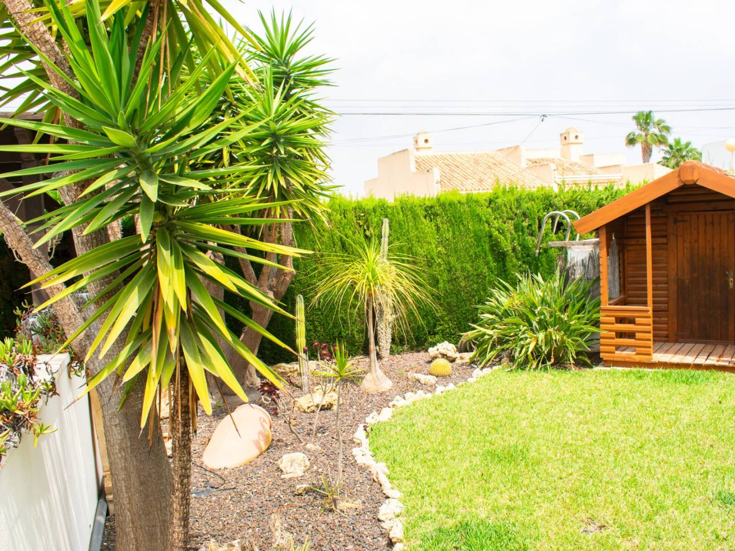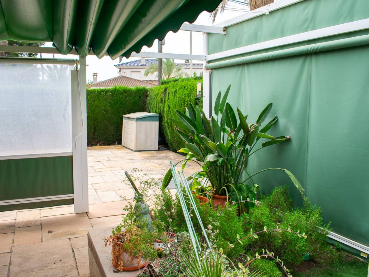 Outside, the villa boasts a spacious garden, a charming private pool , a barbecue area , a garage , and a storage room , all perfectly designed to enjoy the Mediterranean climate with over 300 days of sunshine a year . Its east-facing orientation ensures abundant natural light and ventilation in every room.