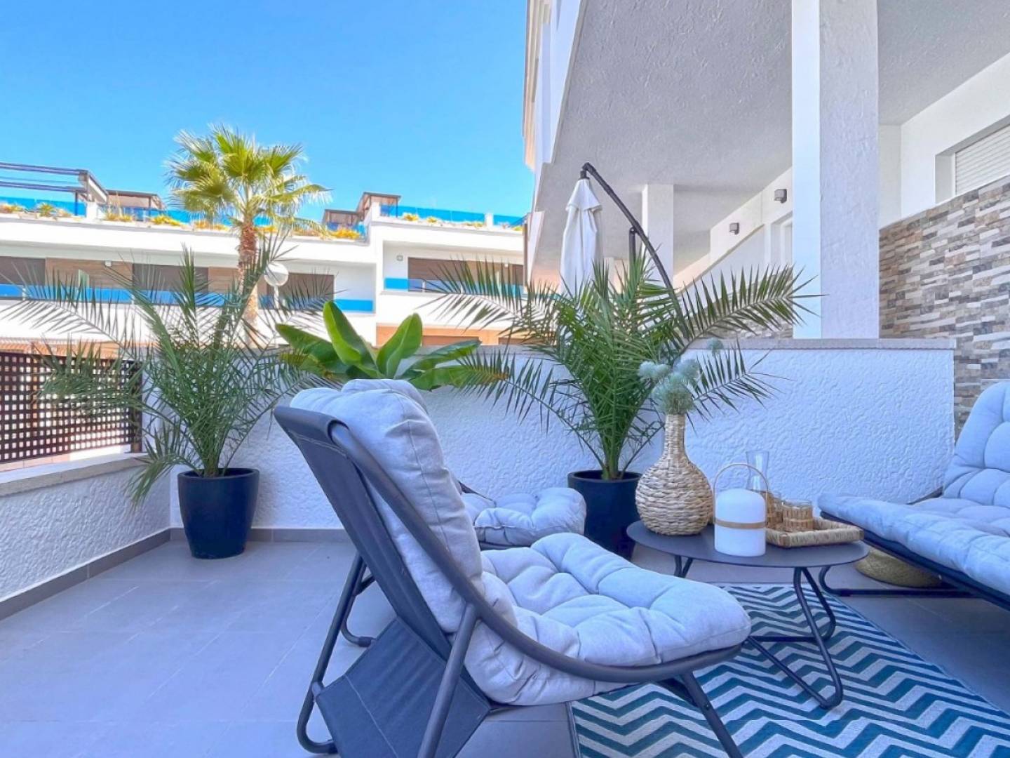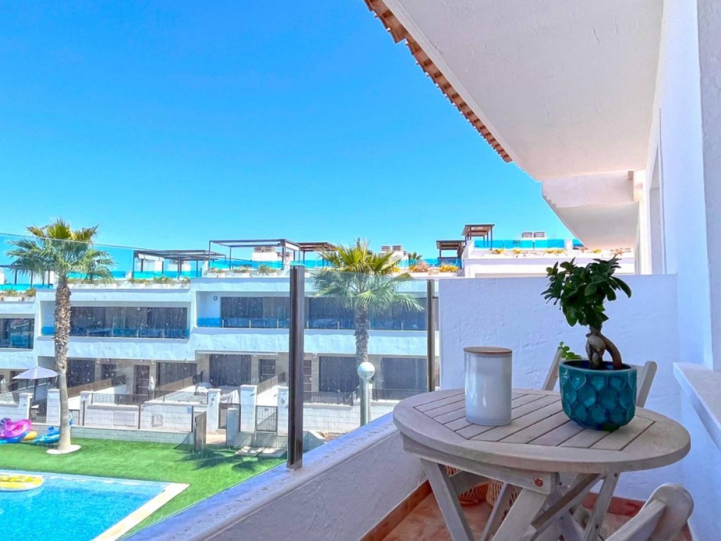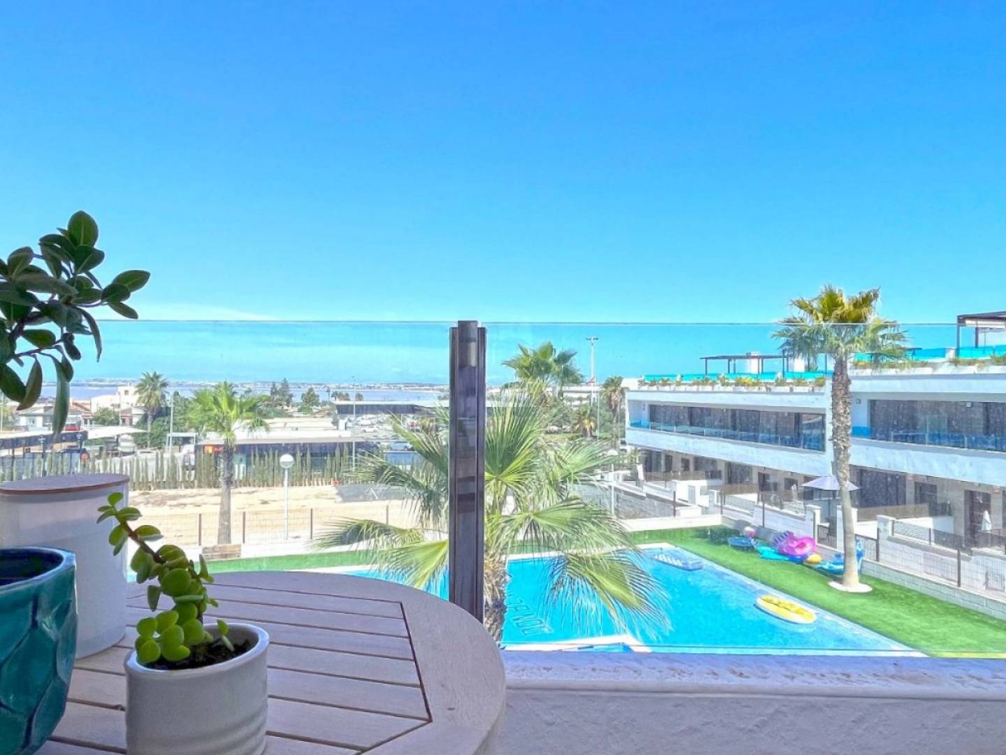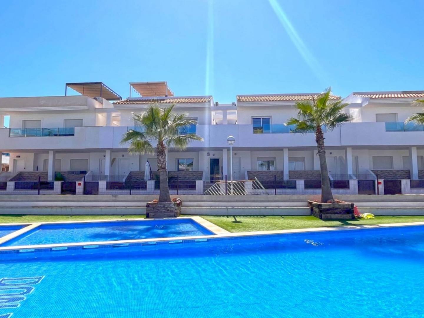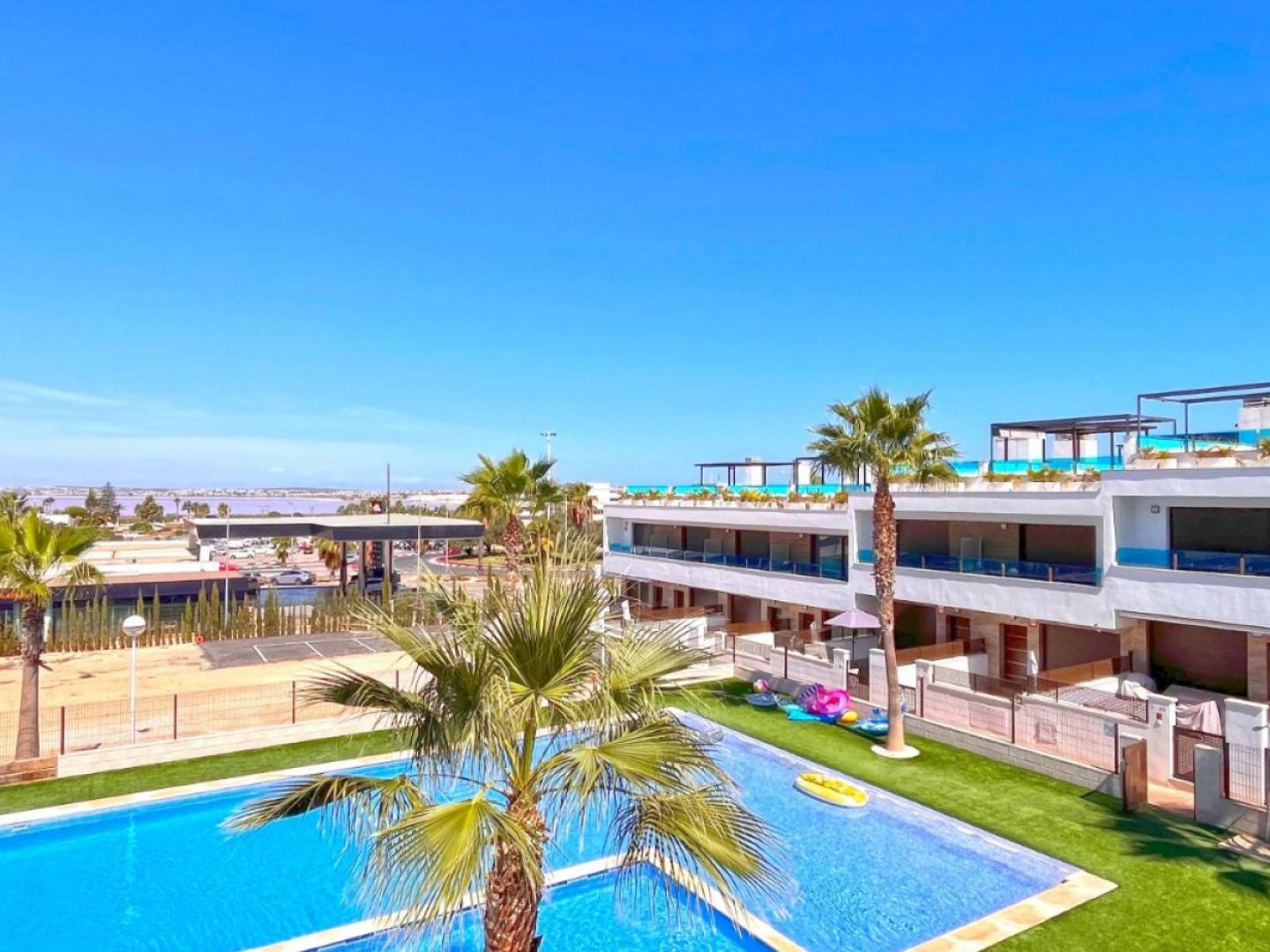 Discover your dream home in this beautifully renovated townhouse located in the sought-after area of Los Balcones, Torrevieja. This modern property boasts 3 spacious bedrooms and 2 stylish bathrooms, perfect for comfortable family living or a holiday retreat. Step inside to find a bright and airy interior, fully furnished with contemporary decor. The separate modern kitchen comes fully equipped, making meal preparation a pleasure. Enjoy the luxury of multiple outdoor spaces, including a ground floor terrace ideal for al fresco dining, a private balcony overlooking the serene communal pool, and a stunning roof terrace with breathtaking views of the famous pink salt lake. Additional features include private parking and access to a well-maintained communal pool, creating a perfect setting for relaxation and leisure. Whether youre soaking up the sun, entertaining guests, or enjoying the tranquil views, this townhouse offers a lifestyle of comfort and convenience. Don't miss the chance to make this exceptional property your own!