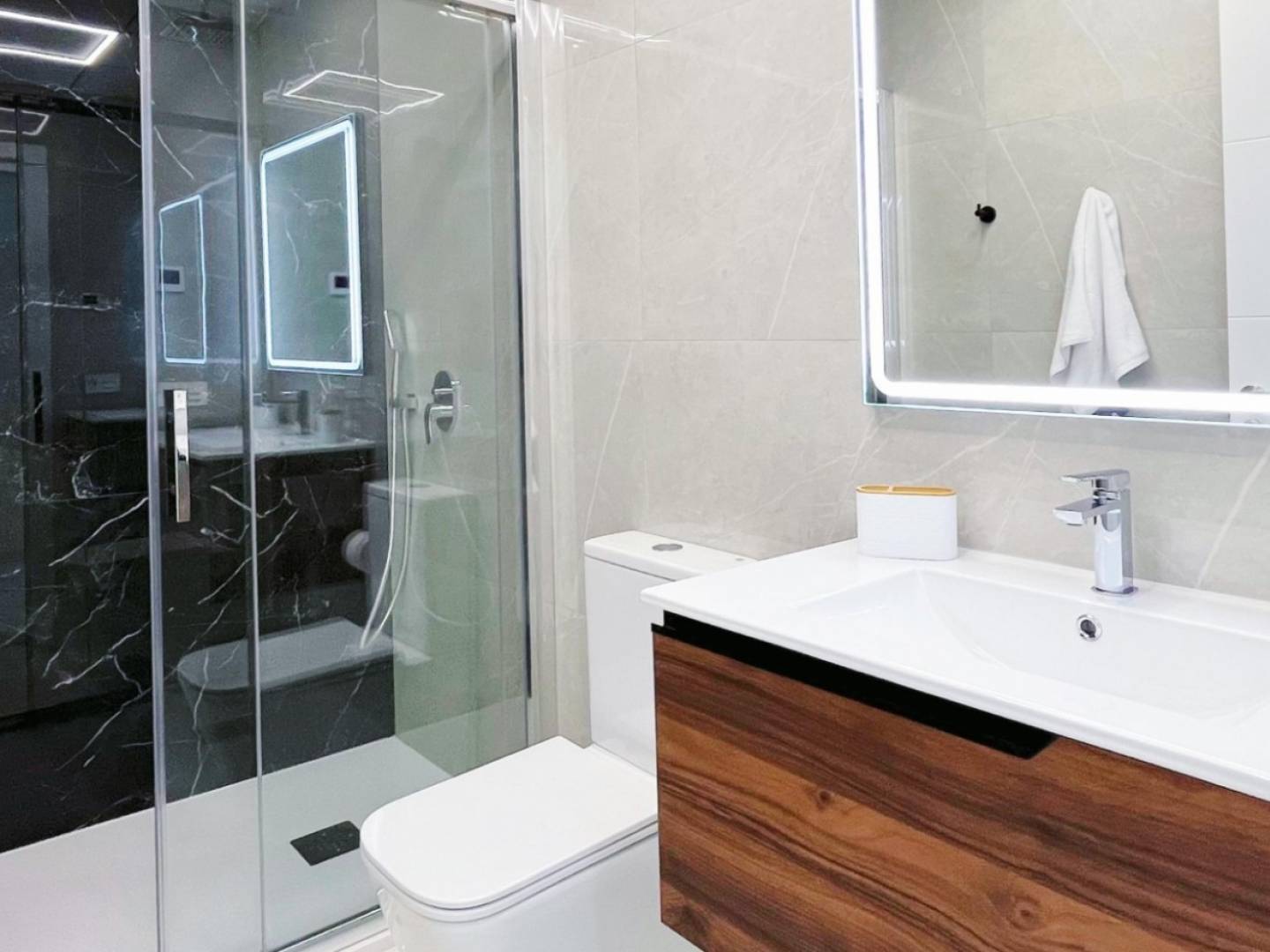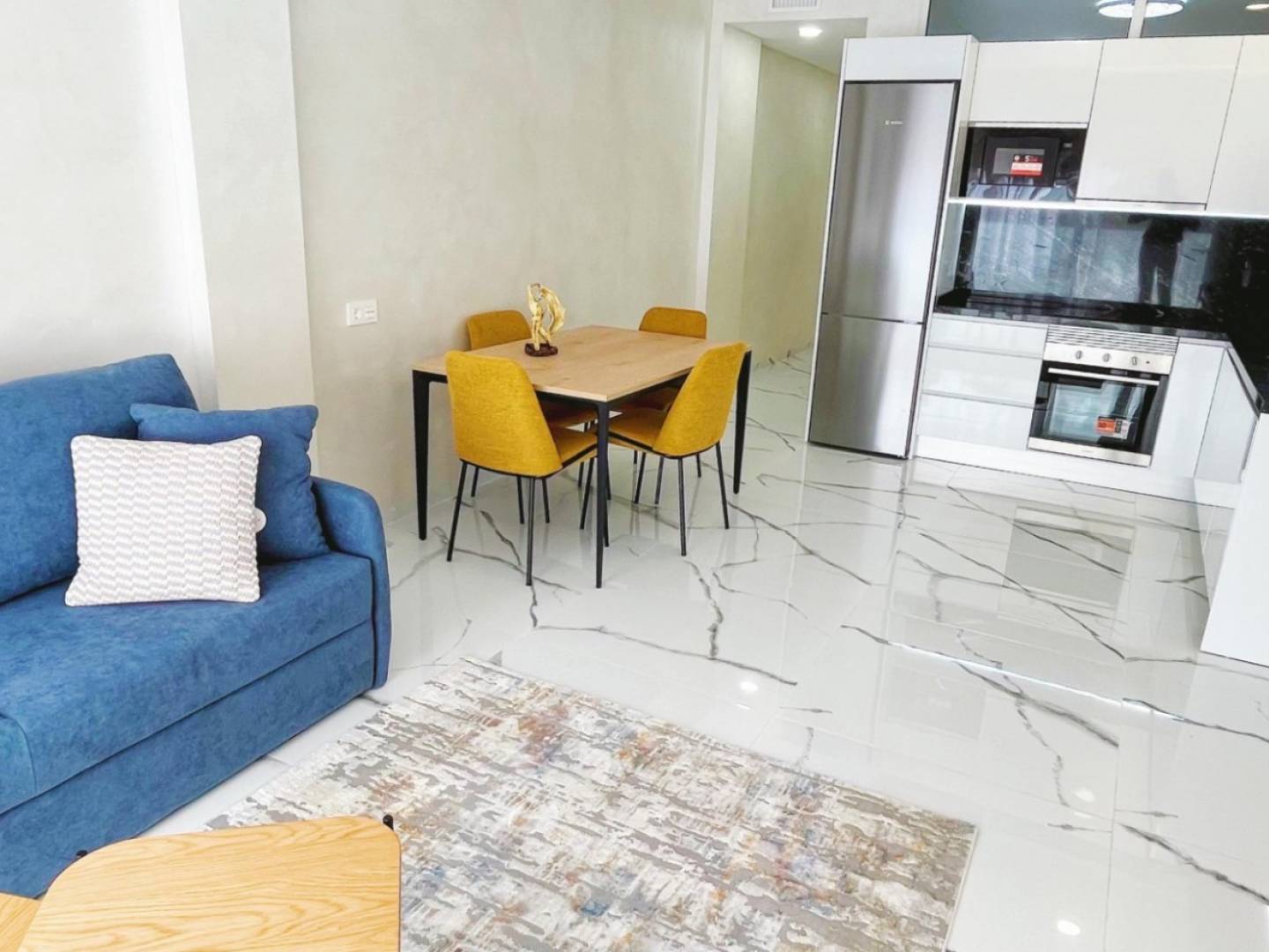 Located in the prime beachfront area of Avenida de la Purísima, just steps from Playa del Cura, this stylish ground floor apartment offers the perfect balance of coastal lifestyle and modern elegance. With 90 m² of built space, the home features 2 spacious bedrooms, 2 luxurious bathrooms, and a beautifully designed private patio—making it ideal as a permanent residence, a premium holiday home, or an attractive rental investment. Inside, the apartment boasts a bright open-plan living and dining area, floor-to-ceiling windows, and sleek interior finishes. The contemporary kitchen is fitted with top-quality appliances, matte black countertops, and elegant cabinetry. Both bedrooms are tastefully furnished with designer wardrobes and plush bedding, while the master suite opens directly to a private patio featuring an outdoor shower, artificial grass wall, and wood accents—a peaceful space to unwind after a day at the beach. The two bathrooms are finished with high-end ceramic and marble-look tiles, LED-lit mirrors, and walk-in glass showers for a touch of hotel-style comfort. Key Features: 2 bedrooms and 2 bathrooms Private internal patio with outdoor shower Fully furnished and move-in ready BOSCH kitchen appliances Elegant white marble-effect floors LED mirrors and designer finishes Fitted wardrobes and extra storage East-facing with natural light throughout Heating and air conditioning Accessible entrance for reduced mobility Surrounded by shops, restaurants, and 24h pharmacy Just 100 meters from the sea This is a rare opportunity to own a fully renovated, turnkey apartment in one of Torreviejas most sought-after locations, combining modern comfort, unbeatable convenience, and timeless style. Book your private viewing now!